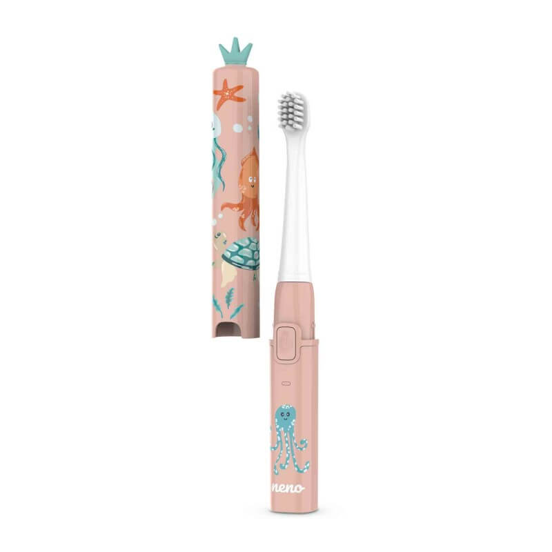 Neno Pulito to elektryczna szczoteczka dla dzieci, idealna do nauki prawidłowego czyszczenia zębów. Wyposażona została we wbudowany timer, który pozwala na kontrolowanie czasu szczotkowania. Co 30 sekund szczoteczka daje delikatny sygnał, przypominając o konieczności zmiany strony jamy ustnej. Pełny cykl trwa 2 minuty – dokładnie tyle, ile rekomendują stomatolodzy.