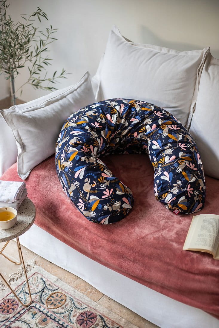 Poduszka gwarantuje wygodę i wsparcie przyszłej mamie oraz zapewnia odpowiednią pozycję i bezpieczeństwo w trakcie karmienia czy innych chwil bliskości, zarówno jej, jak i maluszkowi. To prawdziwy ewenement na rynku! Ma aż 170 cm długości, a dzięki innowacyjnemu wypełnieniu z mikro-perełek doskonale się układa i dostosowuje do ciała, zapewniając komfort w każdej pozycji, np. spaniu na boku czy z lekko uniesionymi nogami, a także podczas karmienia piersią lub butelką. Jest przy tym lekka! Może pełnić też funkcję miękkiego, delikatnego i uspokajającego kokonu, zapewniając optymalny komfort mamie i dziecku w chwilach wypoczynku i bliskości.