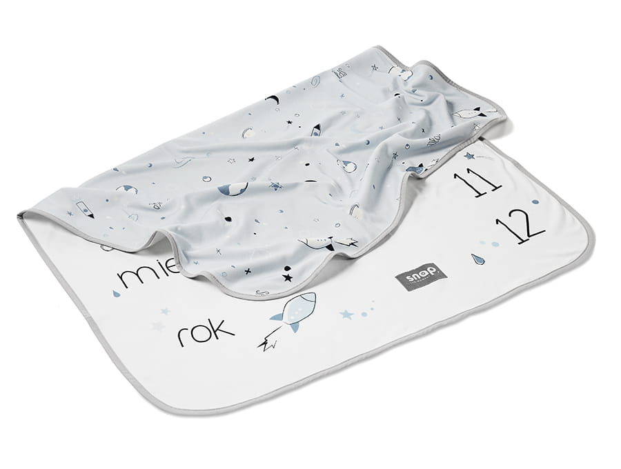 Snap the moment foto-kocyk to dwustronny kocyk, który rośnie razem z dzieckiem. Jedna strona służy do oznaczania wieku malucha, druga to tradycyjny kocyk dziecięcy. Pastelowe wzory zachwycą zarówno dziecko, jak i rodziców. Foto-kocyk doskonale sprawdzi się jako element wyprawki noworodka, a także kocyk przedszkolaka. W zestawie znajdują się 2 sznurki do oznaczania wieku maluszka oraz limitowana foto-karta.