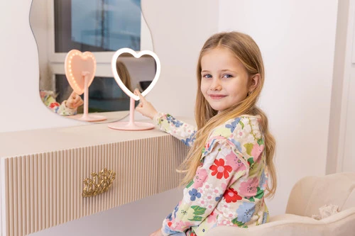 Piękne lusterko w kształcie serca, do tego z podświetleniem LED doskonale będzie się prezentować na toaletce małej księżniczki. Atrakcyjny kształt, kolor i podświetlenie sprawią, że jego szczęśliwa posiadaczka będzie z satysfakcją i uwagą przyglądać się swojemu odbiciu.