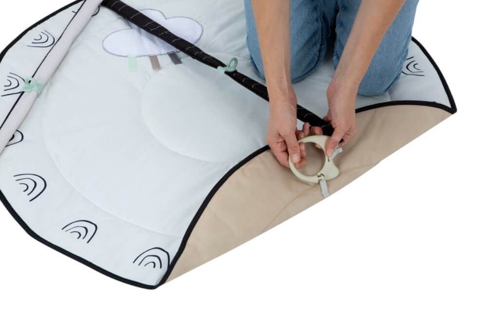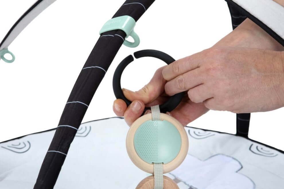 - Regulowane pałąki & pierścienie na zawieszki dla regulacji sensorycznej; przesuwany łącznik pałąków sprawia, że od tej pory możesz dostosować ich ułożenie do potrzeb rozwojowych swojego dziecka. Twój maluszek będzie mógł leżeć na brzuszku, mieć zabawki zawsze blisko rączek, a nawet bawić się na macie z Tobą!