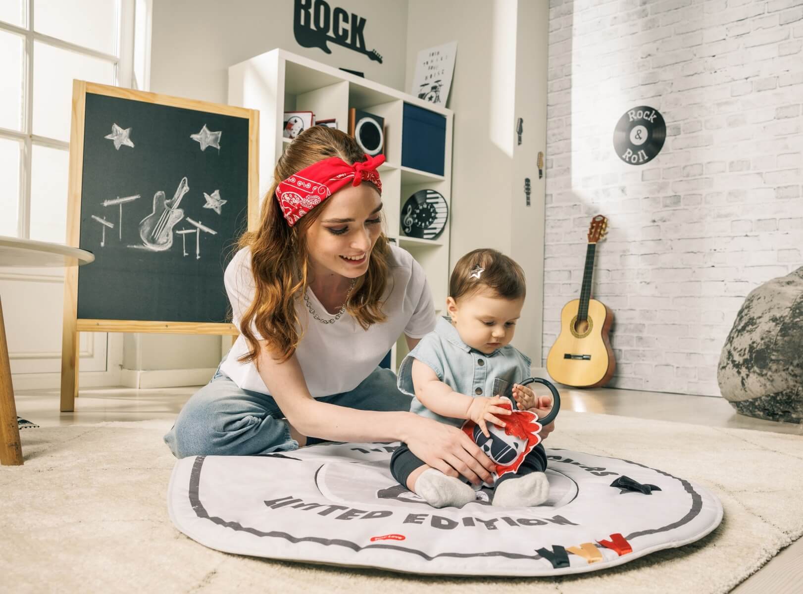 Wprowadź swoje dziecko w świat rock'n'rolla dzięki tej niesamowitej macie do ćwiczeń, która zawiera wciągające funkcje, wspaniałe melodie i kontrastowy design
