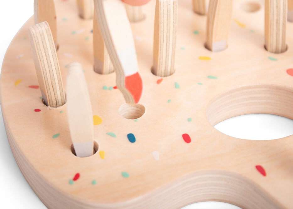 - Drewniana paleta - stabilna baza dla kolorowych pędzli.
