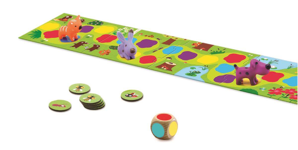 Zasady gry są niezwykle intuicyjne, dzięki czemu maluchy w wieku od 2,5 do 5 lat szybko opanują tajniki wyścigu. Celem jest doprowadzenie swojego zwierzątka jako pierwszego do mety. To, dokąd pójdzie figurka, zależy od koloru, który wylosuje się na kostce. Ale uwaga! Na kostce czają się niespodzianki. Wypadnięcie kwiatka oznacza przesunięcie się na kolejne pole tego samego koloru, co dodaje element strategii. Jeśli zaś wylosuje się pszczółkę - figurka cofa się do tyłu, wprowadzając dreszczyk emocji i nieprzewidywalność!