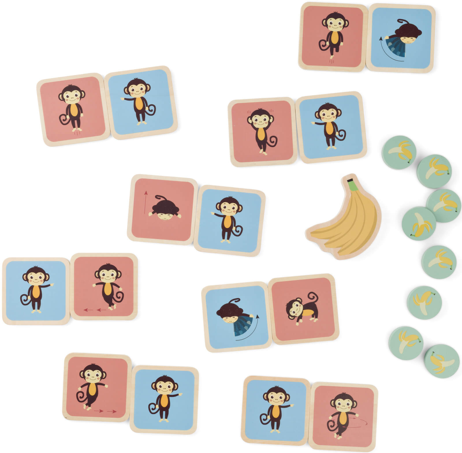 Zasady gry są proste i intuicyjne, dzięki czemu dzieci od razu mogą włączyć się do zabawy. Jeden z graczy układa trasę z drewnianych kart na podłodze. Niebieskie karty wskazują kierunek poruszania się, a różowe określają rodzaj ruchu. Pomiędzy kartami rozkłada się żetony bananów, a na końcu trasy umieszcza trofeum. Gracze poruszają się, zbierają banany i wykonują zadania. Wygrywa ten, kto dotrze do trofeum lub zbierze najwięcej bananów.