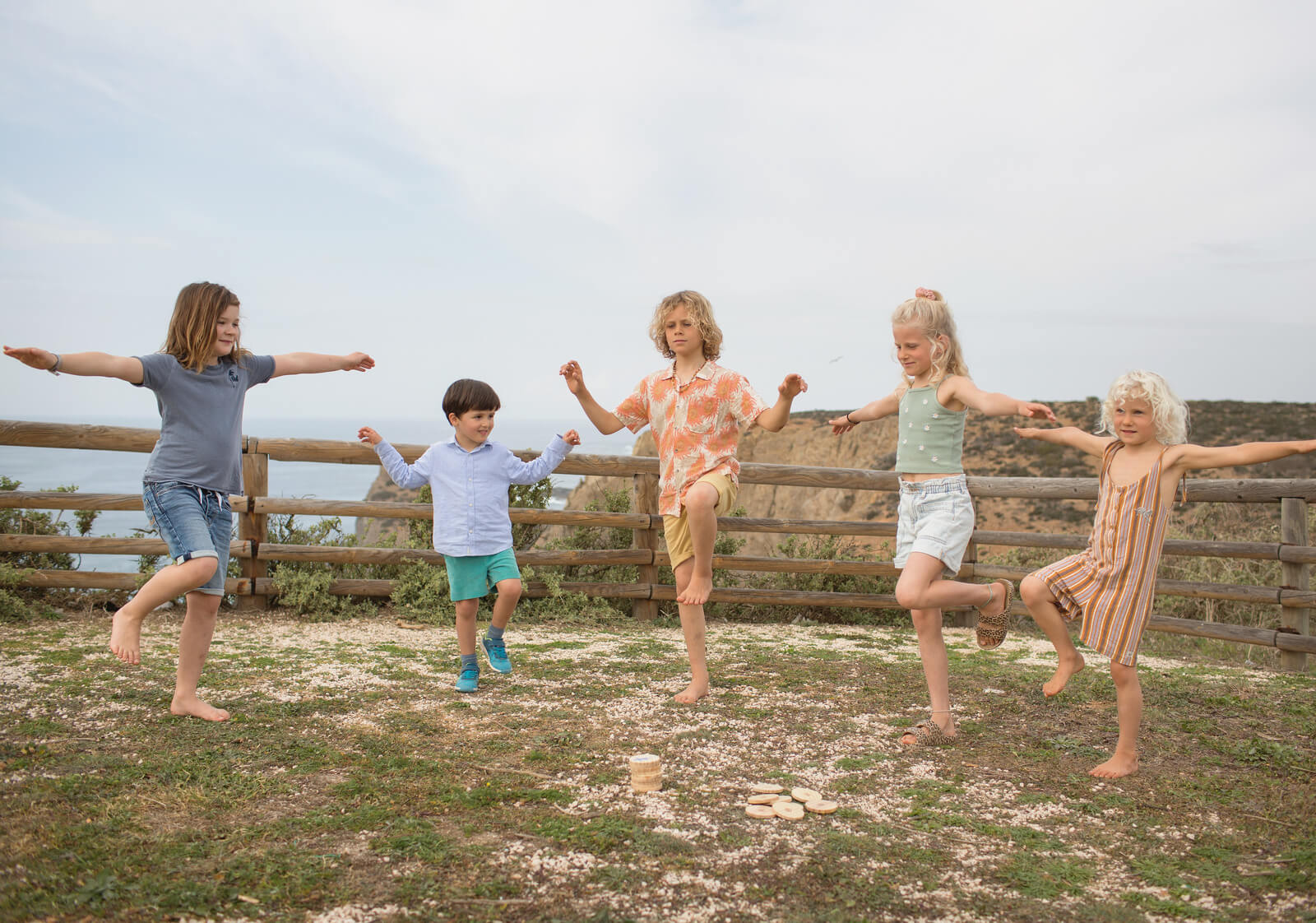 - Rozwój świadomości ciała (body awareness): dzieci uczą się rozpoznawać i naśladować różnorodne pozycje, co zwiększa ich świadomość układu ruchu i możliwości ciała.