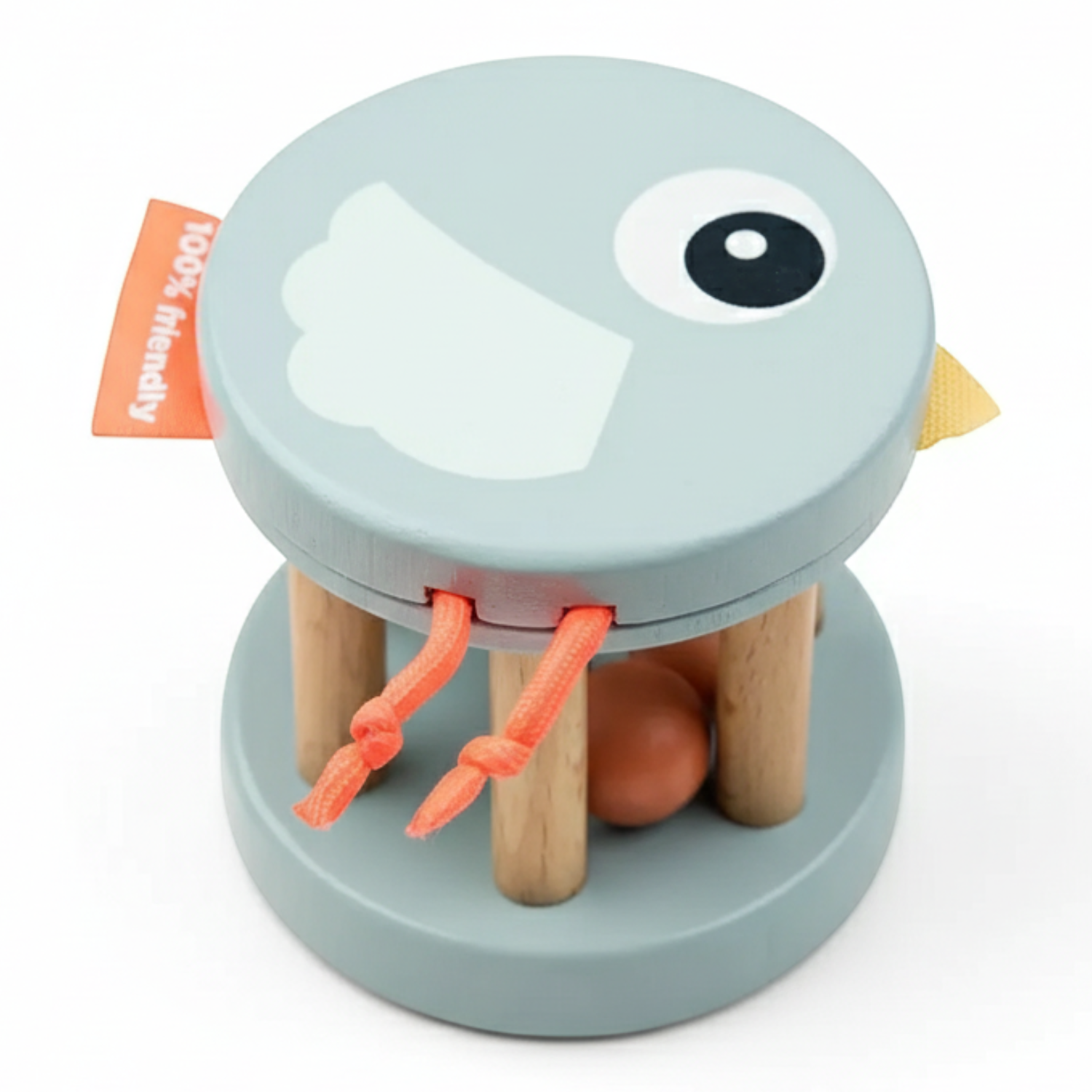 Urocza grzechotka Birdee to świetny przyjaciel i towarzysz zabaw