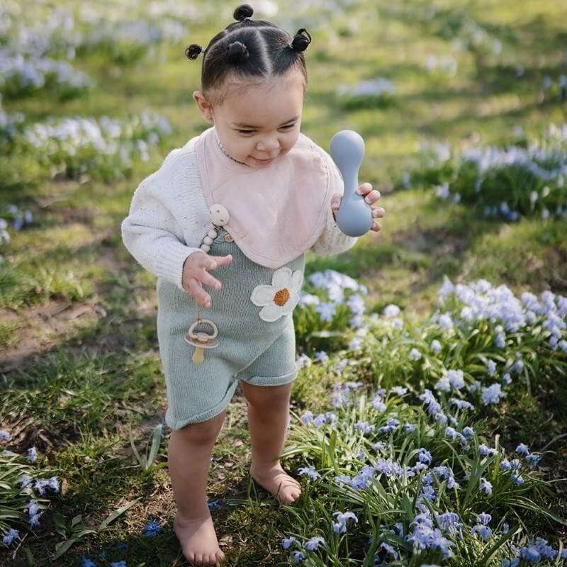 Spraw, aby czas zabawy był bardziej angażujący dzięki silikonowej grzechotce Mushie, która oferuje delikatne wrażenia sensoryczne dla najmłodszych