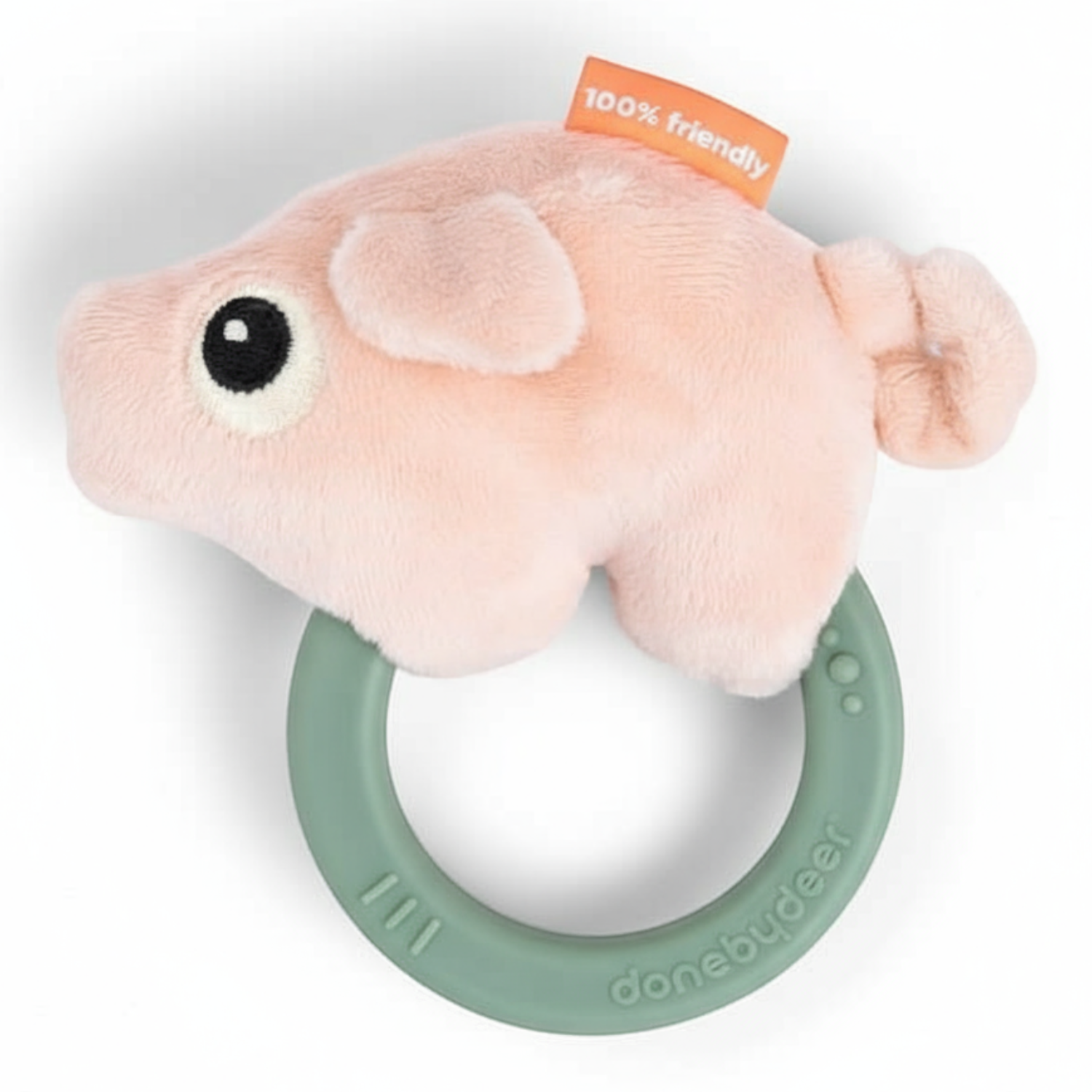 Świnka Pigee, w pięknym pastelowym kolorze z kontrastującymi detalami, oferuje delikatną stymulację wizualną, dzięki czemu ten gryzak jest świetnym towarzyszem rozwoju Twojego dziecka. Niezależnie od tego, czy chodzi o ukojenie obolałych dziąseł, czy zajęcie małych rączek, ta grzechotka sensoryczna sprawdzi się na każdym etapie rozwoju Twojego dziecka.