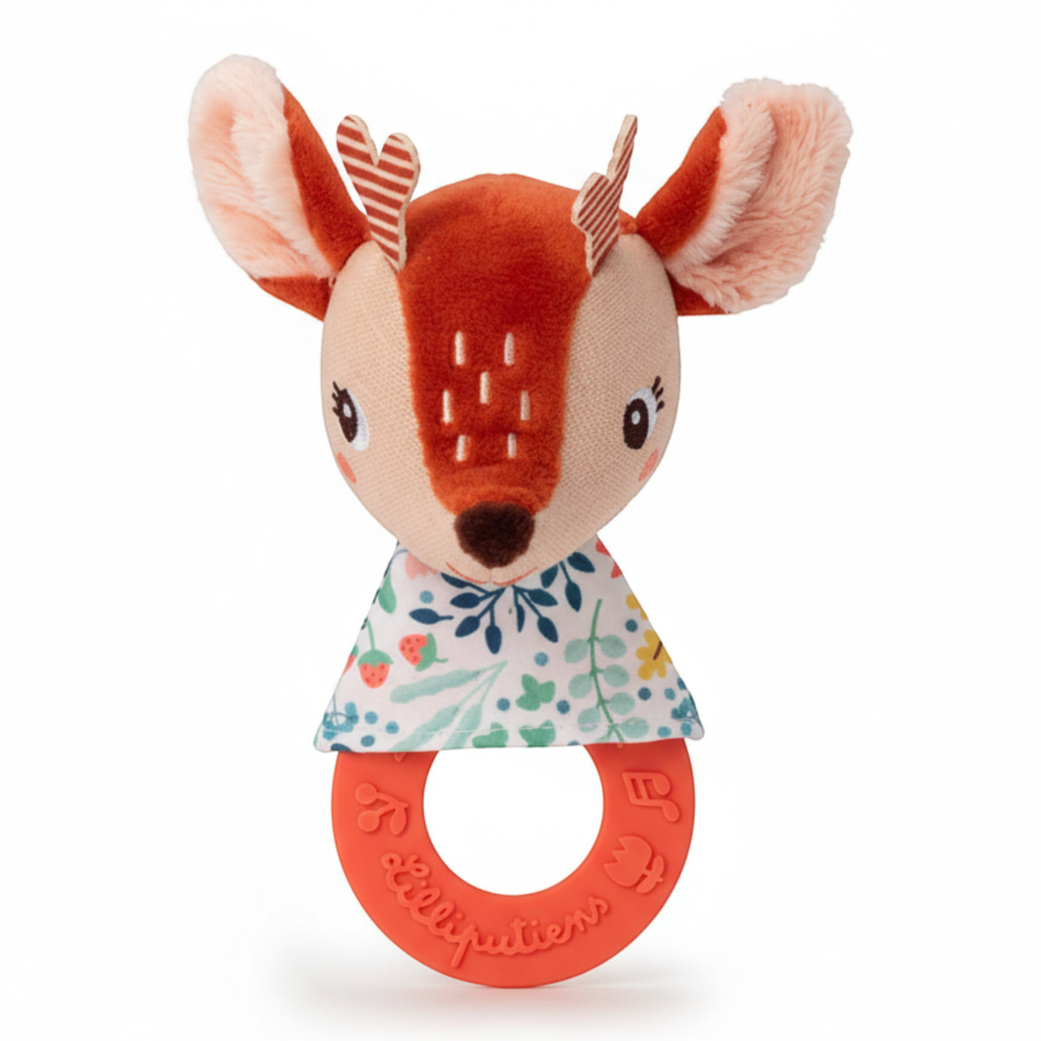 Grzechotka z silikonowym gryzakiem z kolekcji Sarenka Stella belgijskiej marki Lilliputiens to aktywizująca zabawka dla niemowląt