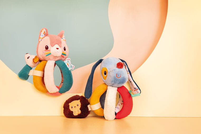 Grzechotka z uchwytami z kolekcji Kotka Jeanne belgijskiej marki Lilliputiens to aktywizująca zabawka dla niemowląt