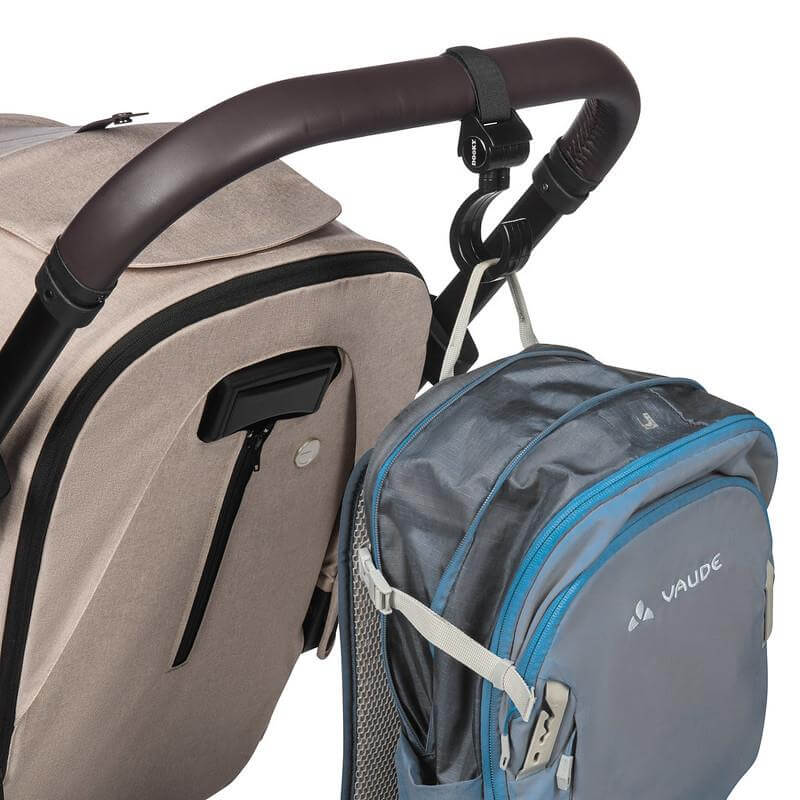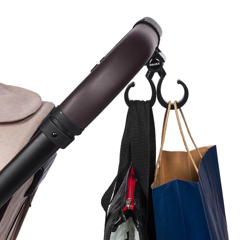 - Wszechstronny system zawieszania toreb na kierownicy wózka spacerowego lub wózka dziecięcego