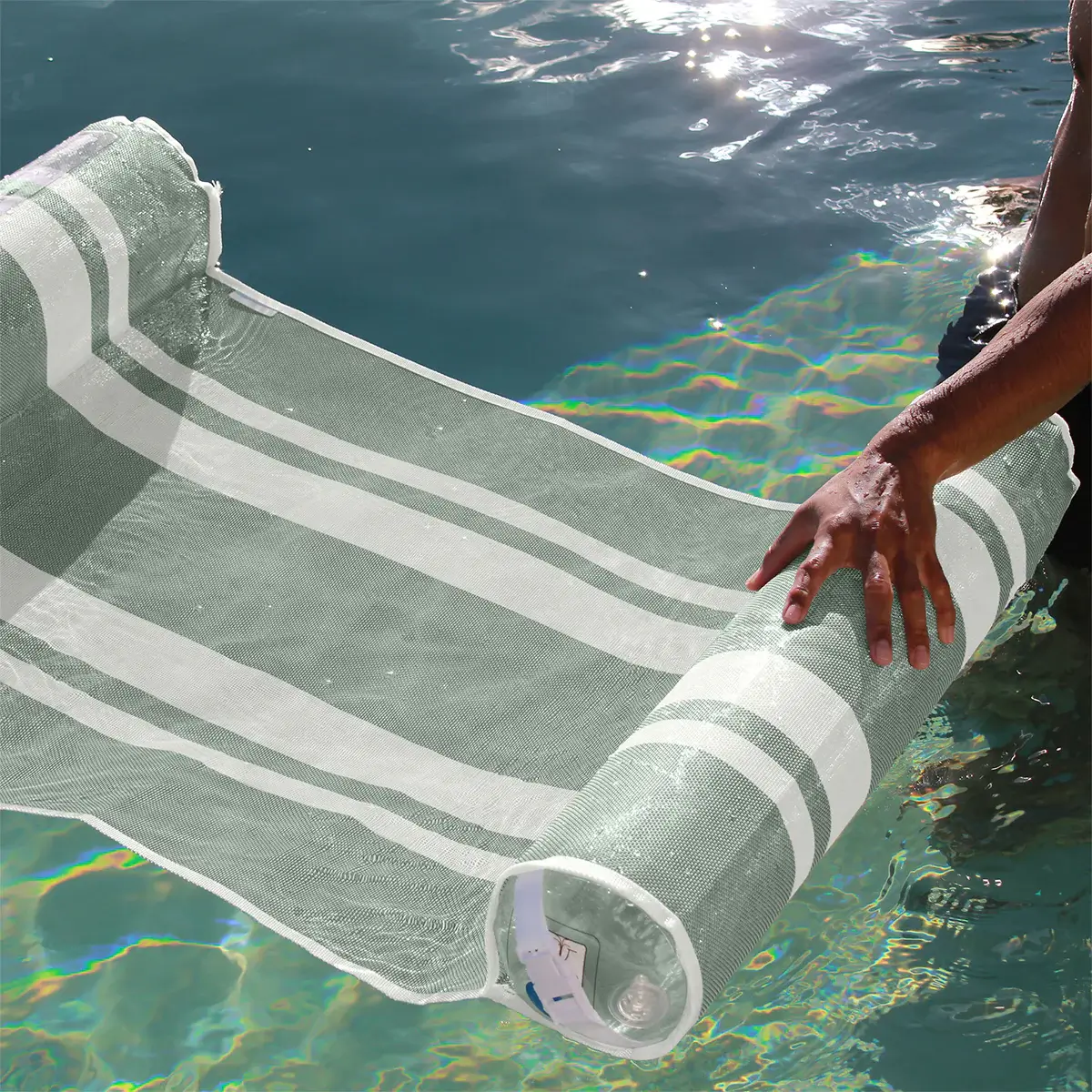 Hamak wodny to idealne połączenie funkcjonalności i komfortu. Jego wyjątkowa konstrukcja z siatki Textilene wspartej na wałkach bolsterowych zapewnia stabilność i pozwala wodzie delikatnie chłodzić ciało, dostarczając niezwykłych doznań podczas letnich dni.