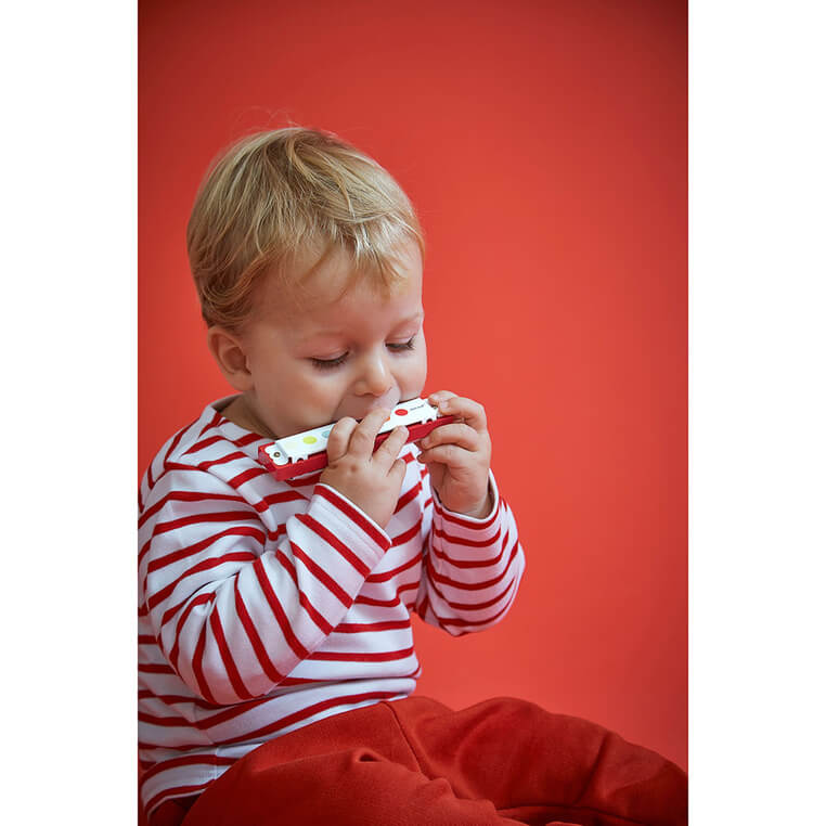 Harmonijka jest częścią kolekcji Confetti - serii pierwszych zabawek muzycznych stworzonych z myślą o radości i swobodzie. Kolorowe instrumenty Janod wspomagają rozwój muzyczny dzieci, pozwalając im na naturalne odkrywanie melodyjności, poczucia rytmu i wrażliwości na dźwięki.