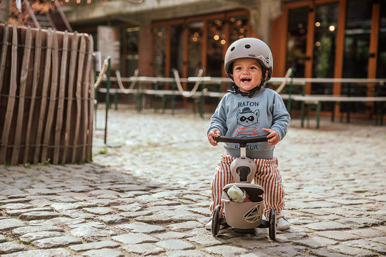 Bez używania narzędzi, za pomocą jednego guzika można w kilka sekund zamienić pojazd w hulajnogę na 3 kołach – obrócone siedzisko staje się jej przednią ramą. Wystarczy jeszcze przenieść kierownicę (montowana na klik) i gotowe! Teraz także starszak może rozpocząć swoją scaterską przygodę. - Stabilna i bezpieczna