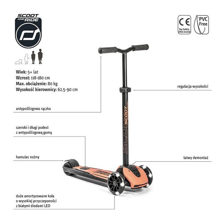 Highwaykick 5 LED Hulajnoga trójkołowa balansowa ze świecącymi kółkami 5+ Peach