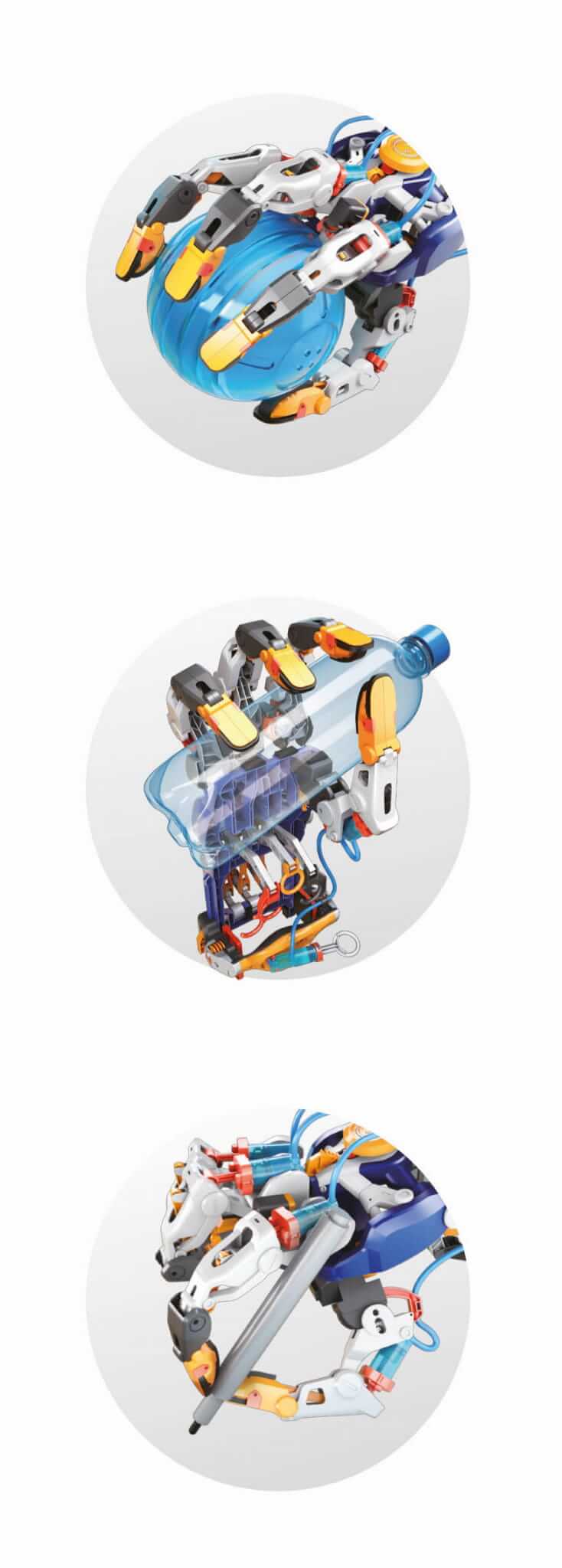 Dodaj wodę do systemu i kontroluj go opuszkami palców. Ręka dostosowana jest do przenoszenia przedmiotów takich jak piłki czy butelki. Może być przystosowana zarówno dla osób praworęcznych, jak i leworęcznych.