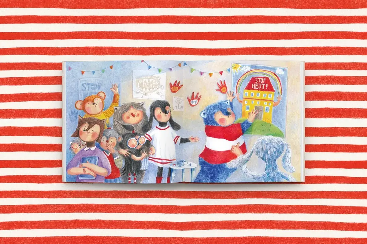 Faktycznie, Pink, mały niebieski stwór, który jedno ucho ma okrągłe, a drugie trójkątne, czuje, że za chwilę nie wytrzyma. Jeszcze moment i coś w nim bardzo głośno krzyknie: Nie chcę tak! Chcę sam o sobie opowiedzieć.