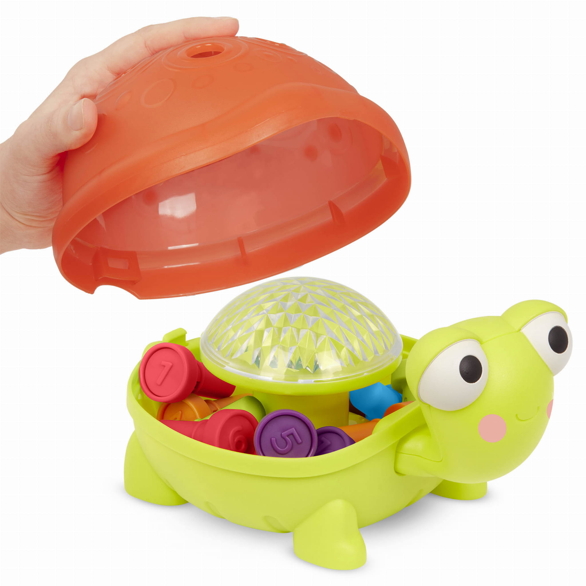 - wesołe odgłosy i różnobarwne efekty świetlne – uruchamiane poprzez naduszenie “kryształowej” kopułki znajdującej się pod pancerzem żółwia*