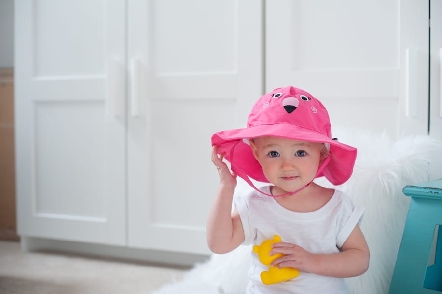 W ochronnym kapeluszu przeciwsłonecznym twój Maluch będzie wyglądać uroczo, bawiąc się na plaży, biorąc kąpiel na basenie lub na podwórku w baseniku
