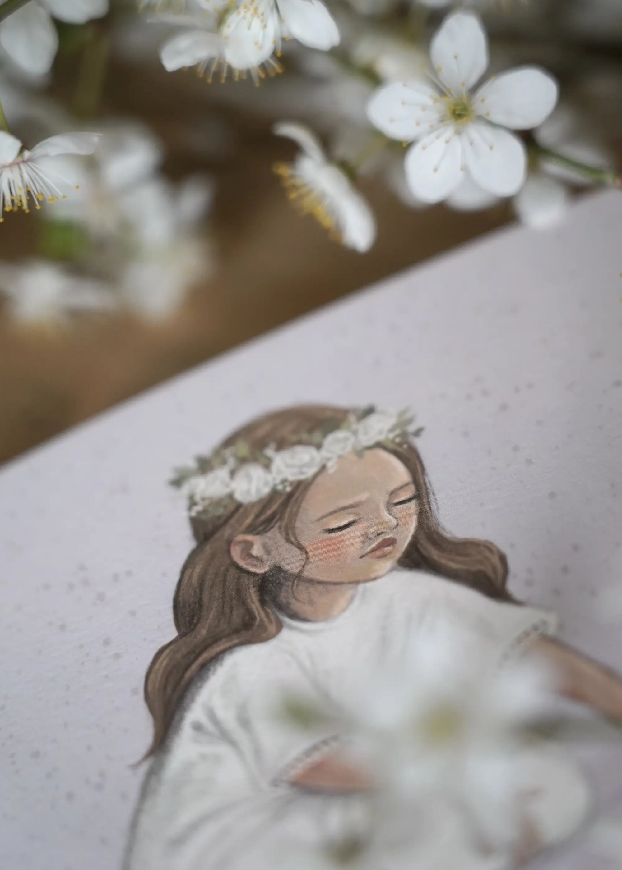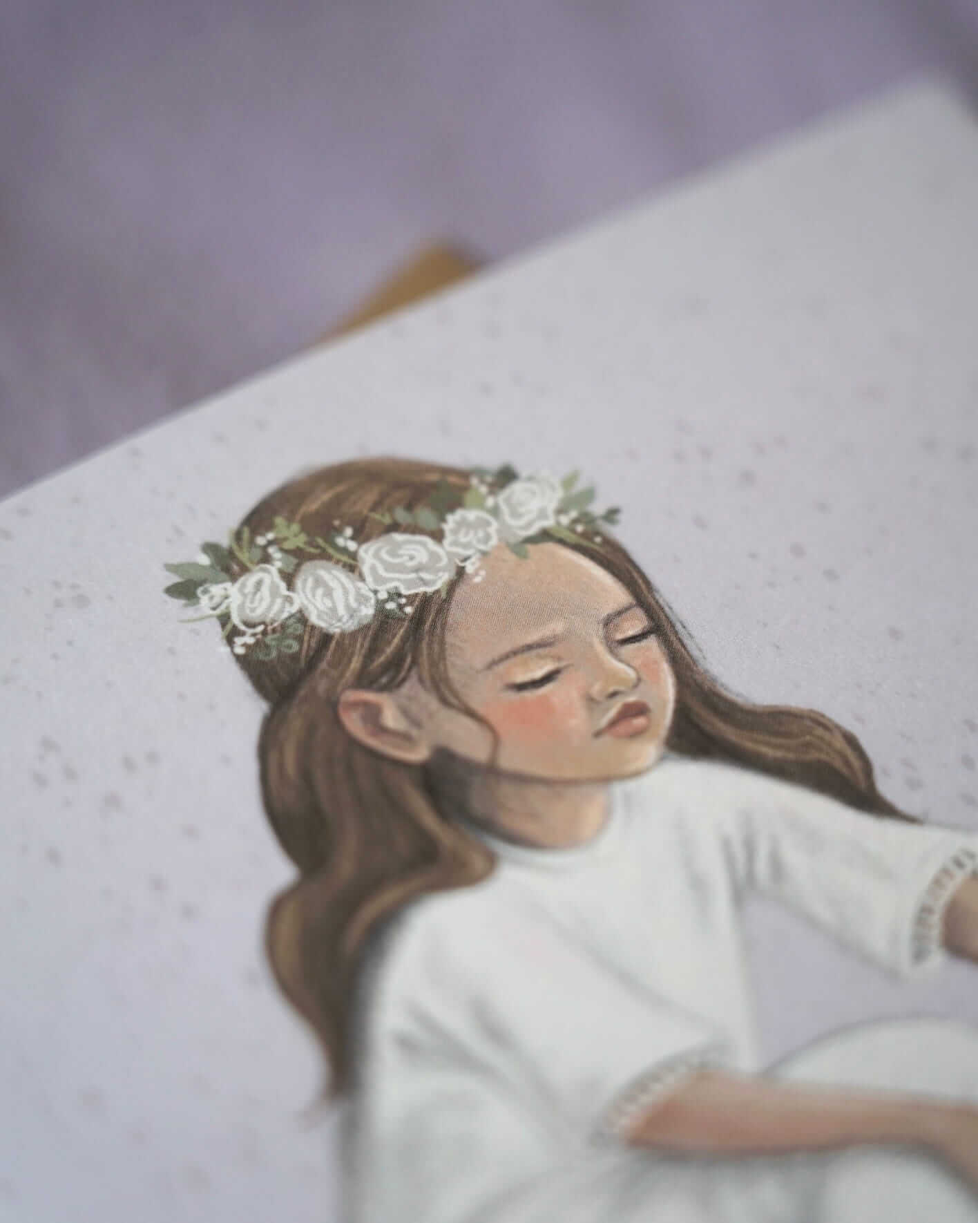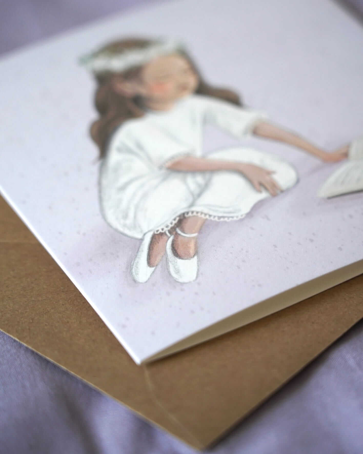 Kartka komunijna dla dziewczynki w subtelnym, pastelowym kolorze