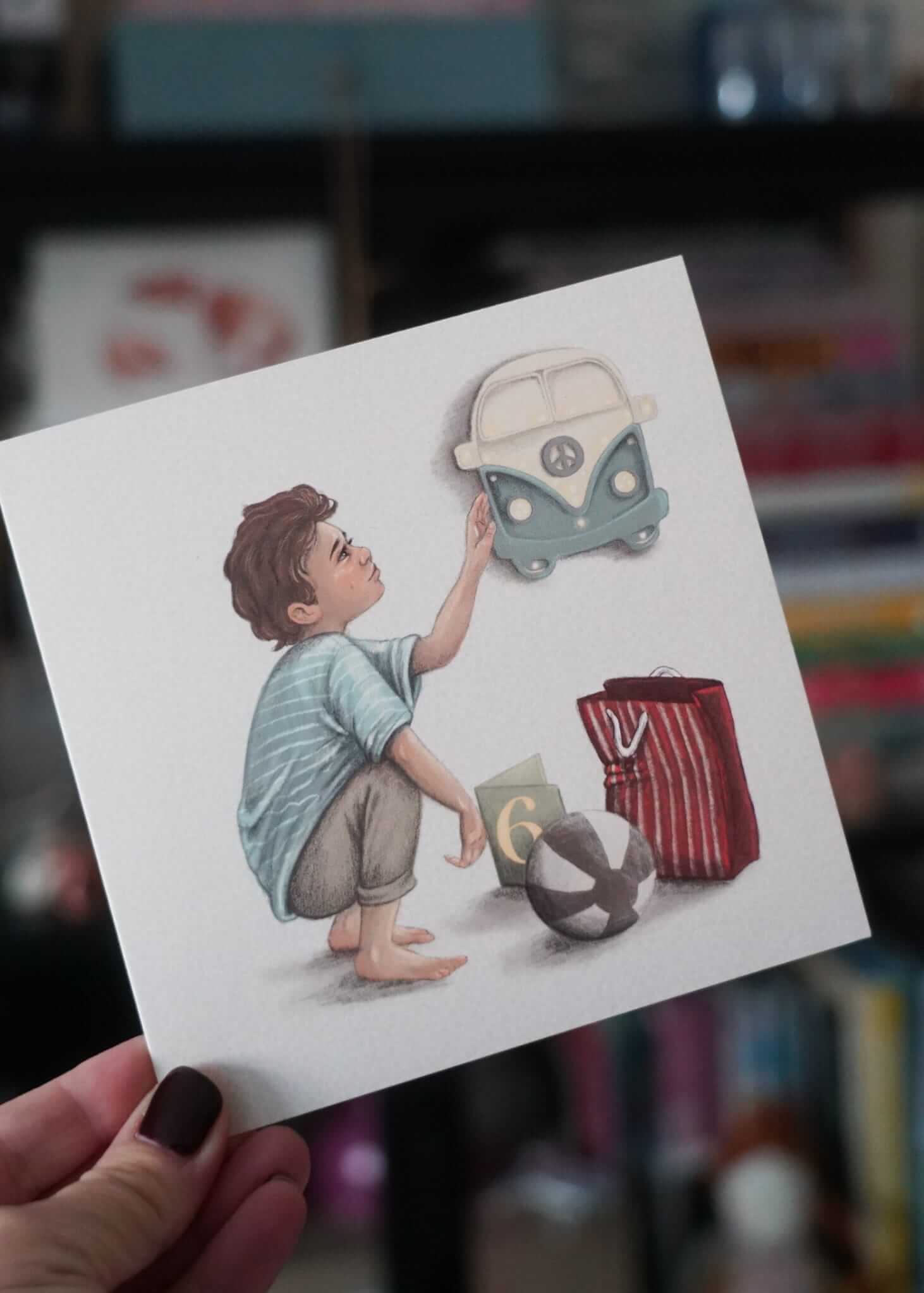 Ta ręcznie ilustrowana kartka na szóste urodziny to idealny sposób na wyrażenie ciepłych życzeń, które zostaną z dzieckiem na lata. Pełna delikatnych detali kartka sprawi, że maluszek i jego rodzice poczują się naprawdę wyjątkowo.