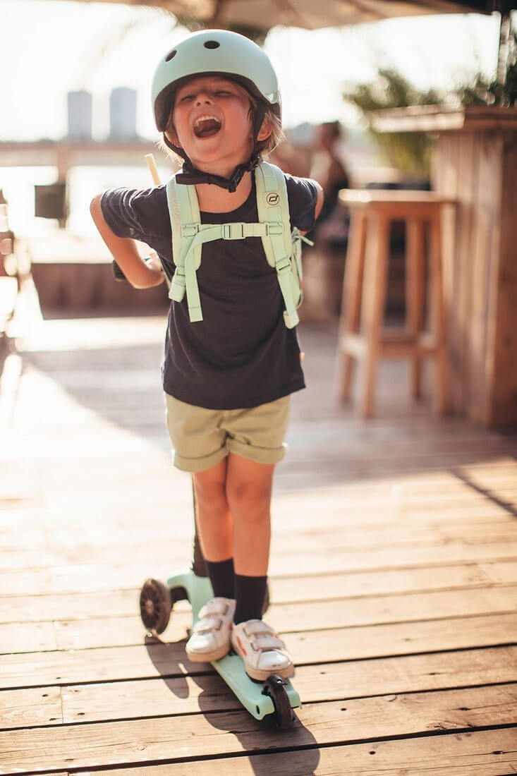 Ultralekki (waży zaledwie 290 g!), innowacyjny i stylowy dziecięcy kask ochronny austriackiej marki SCOOT&RIDE, który „rośnie” razem z maluchem. Idealny dla dzieci od 3. roku życia, na obwód głowy od 51 do 55 cm, regulowany za pomocą pokrętła z tyłu.