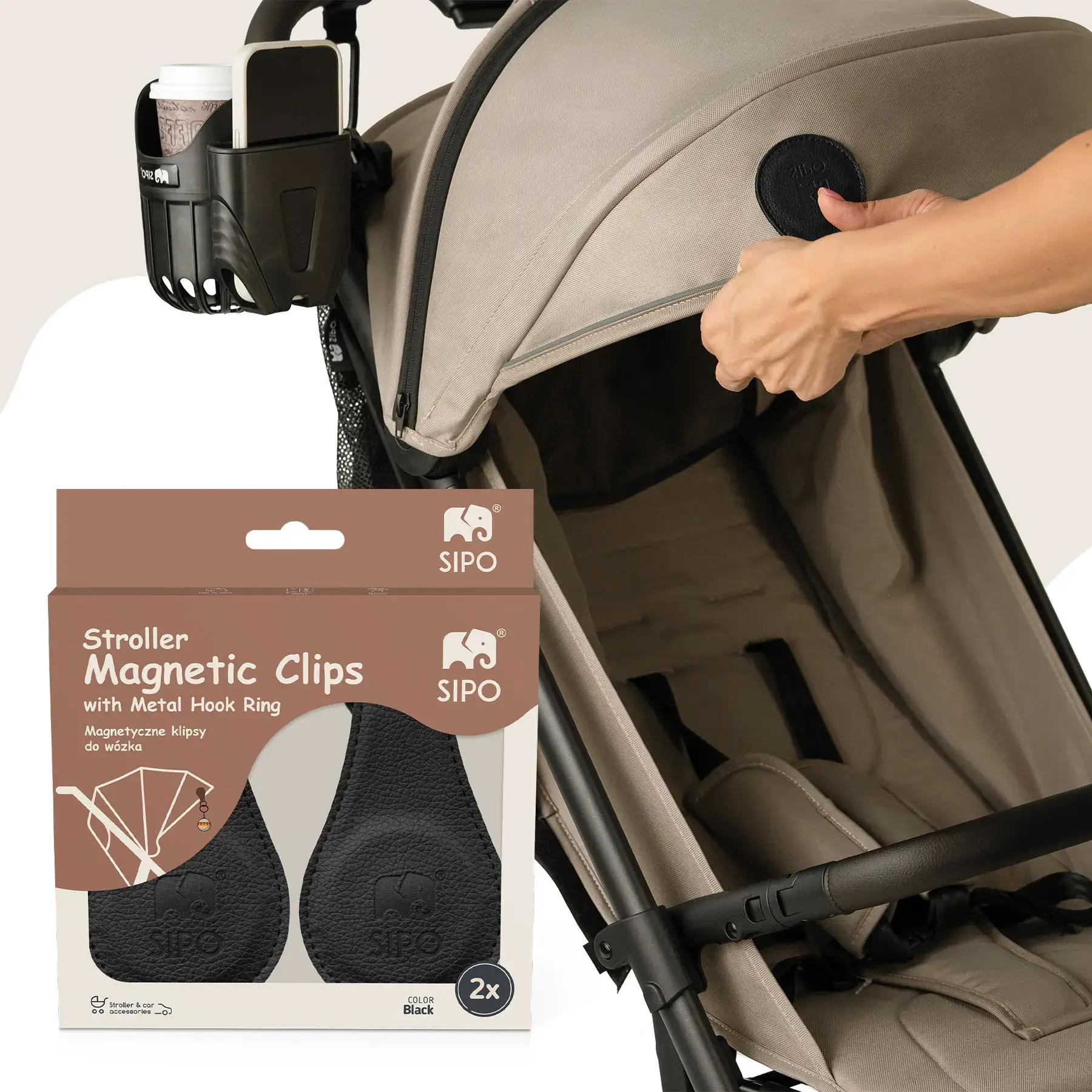 Magnetyczne klipsy do wózka SIPO to praktyczny i elegancki sposób na uporządkowanie akcesoriów podczas spaceru czy podróży