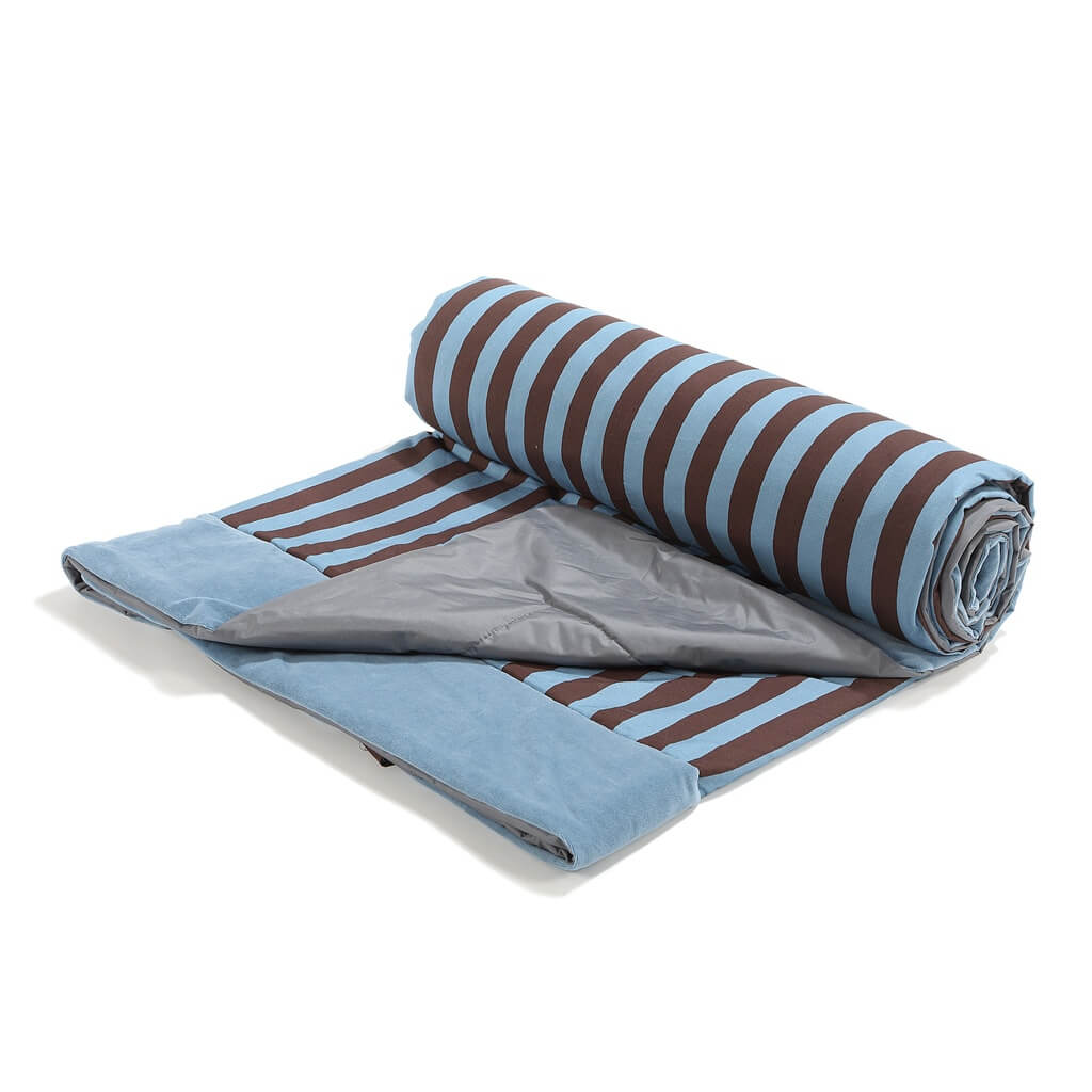 Koc piknikowy z kieszonką, mata do zabawy XXL 180x190 - STRIPES BLUE