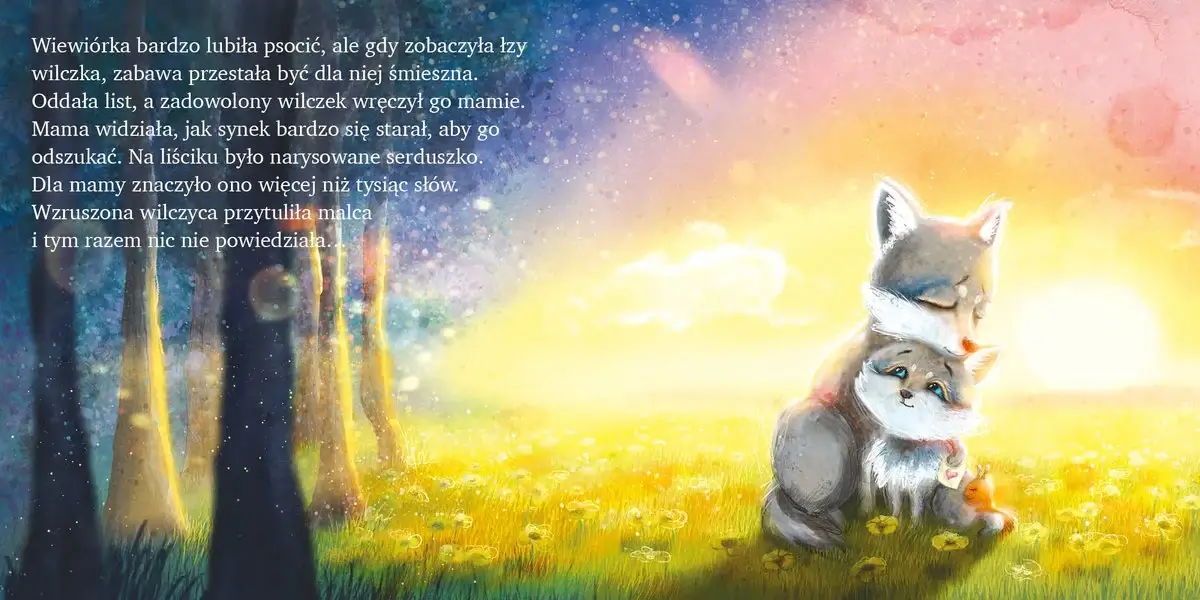 Okazuje się jednak, że list zabiera mała psotna wiewiórka i chowa się gdzieś z nim. Wilczek postanawia odszukać zgubę, a mama zawsze jest z nim, wspiera go i uskrzydla dobrymi słowami.