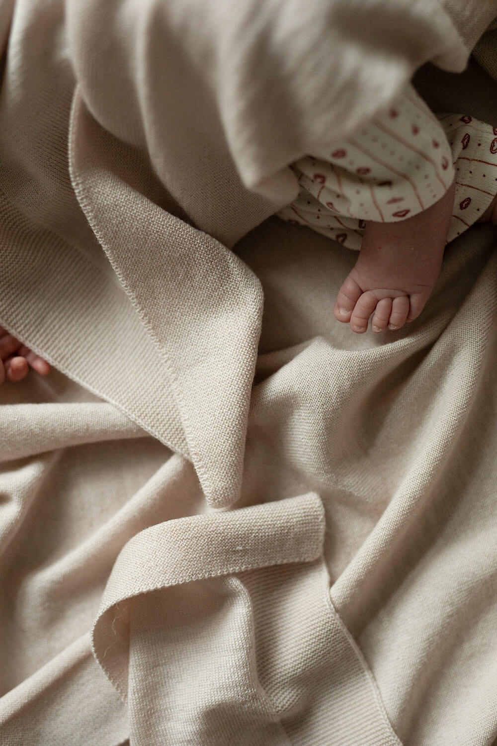 Zalecamy delikatne pranie ręczne i płukanie w letniej wodzie o temperaturze max. 30 stopni. Używać płynów przeznaczonych wyłącznie do prania wełny, np różowy Perwoll. Suszyć na płasko oraz unikać suszenia poprzez wysokie temperatury typu kaloryfer lub słońce. Wełna merino nie brudzi się tak jak inne włókna. Posiada samoczyszczące "łuski", które sprawiają, że ma właściwości antybakteryjne i nie wchłania zapachów, dlatego aby odświeżyć kocyk wystarczy go przewietrzyć.
