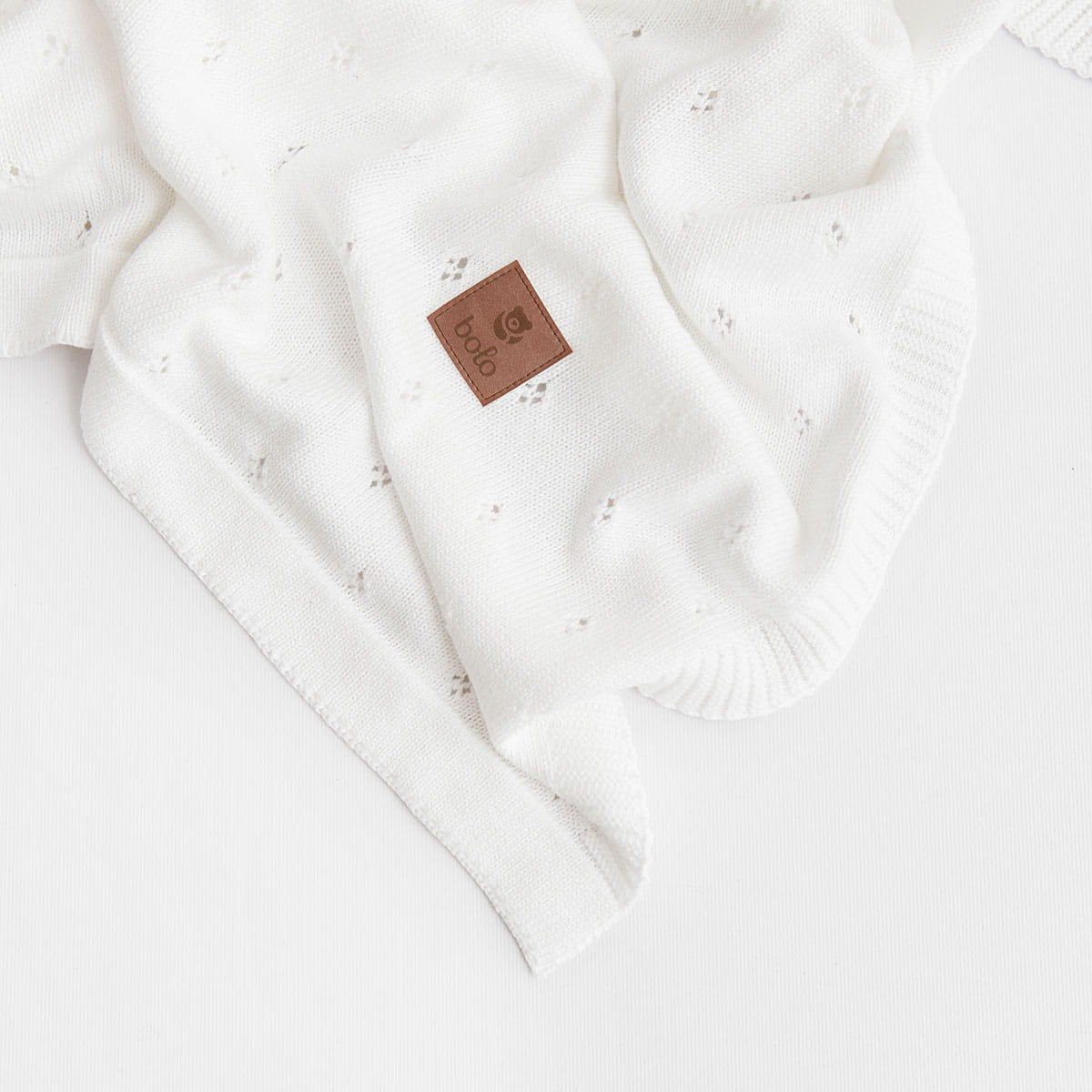 Naturalna przędza bawełniana wykazuje właściwości wysokiej przepuszczalności powietrza, dzięki czemu umożliwia skórze swobodne oddychanie i nie przyczynia się do przegrzewania ciała. Kocyk posiada miłą dla oka fakturę i ciekawy splot z maleńkimi dziurkami, które nadają mu wyjątkowego, niepowtarzalnego uroku.