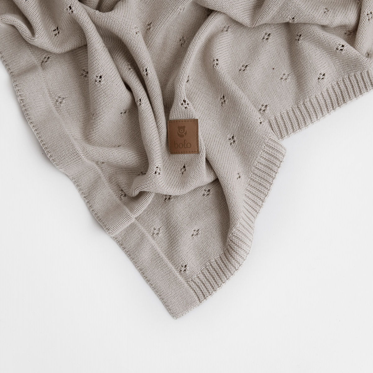 Naturalna przędza bawełniana wykazuje właściwości wysokiej przepuszczalności powietrza, dzięki czemu umożliwia skórze swobodne oddychanie i nie przyczynia się do przegrzewania ciała. Kocyk posiada miłą dla oka fakturę i ciekawy splot z maleńkimi dziurkami, które nadają mu wyjątkowego, niepowtarzalnego uroku.