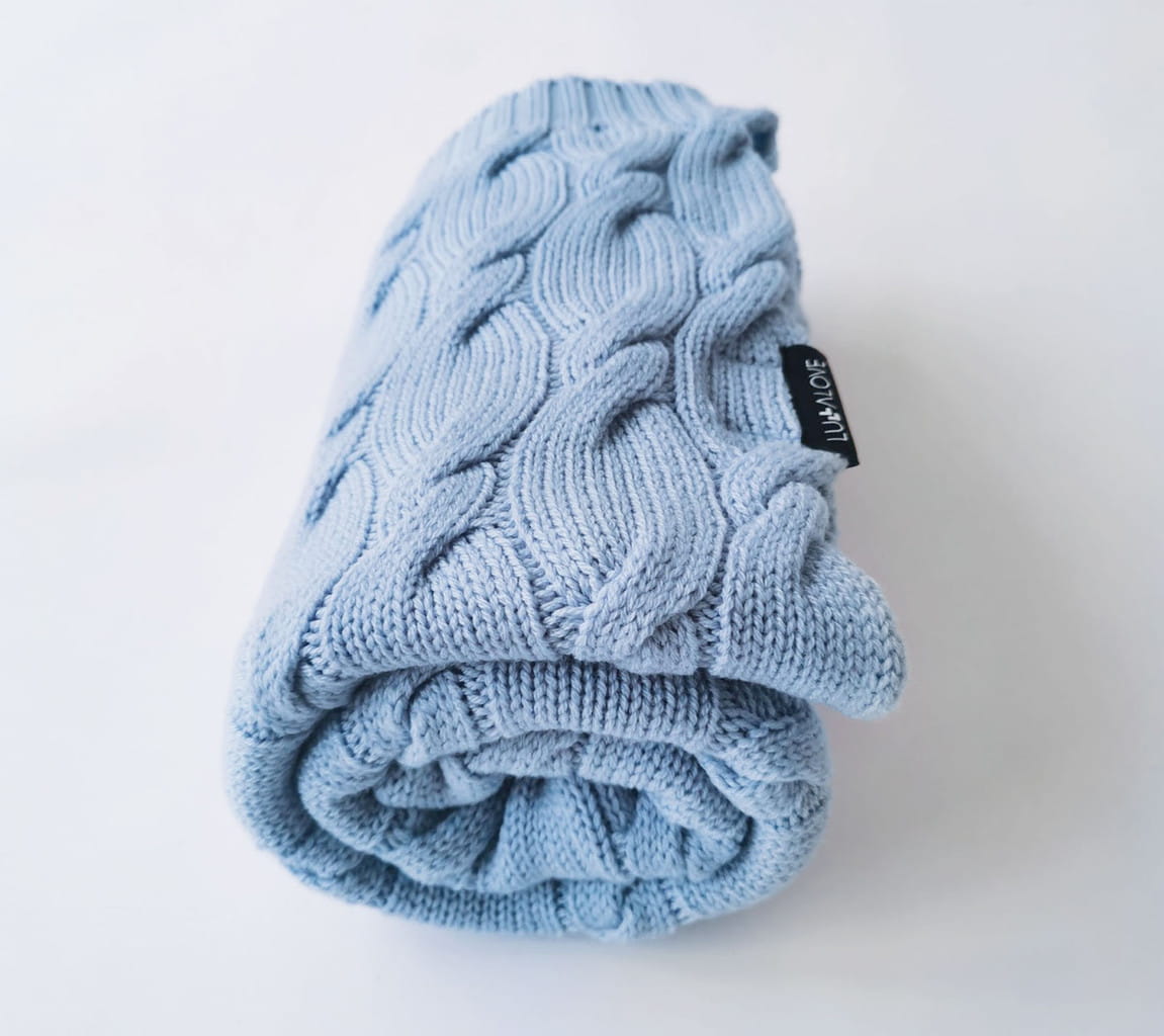 Kocyk z wełny merino WARKOCZ - niebieski, kolekcja PREMIUM