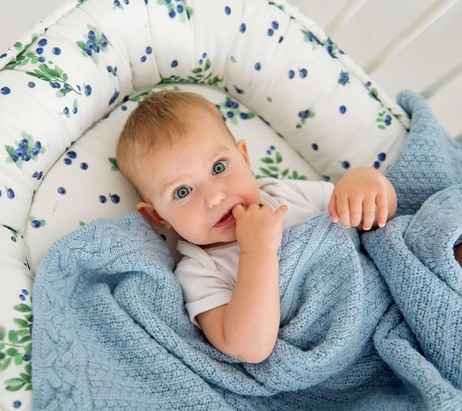 Kocyk z wełny merino - niebieskie ciasteczko PREMIUM