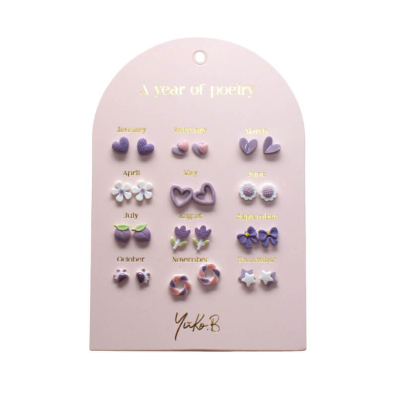Kolczyki „ROK POEZJI” - Fioletowe, 12 par