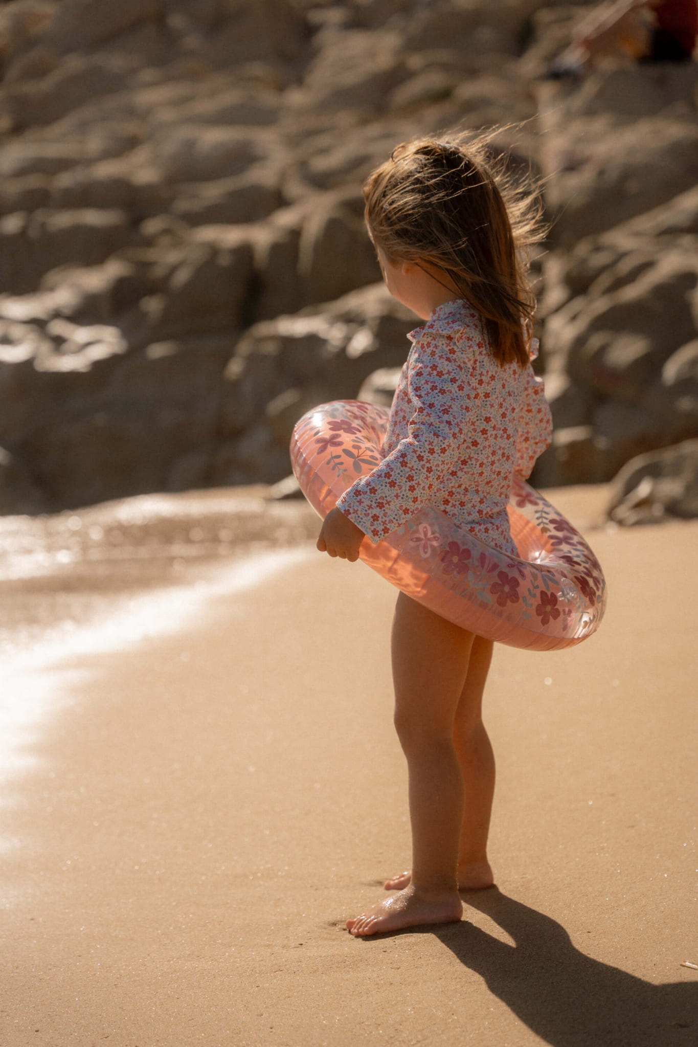 Wykonane z wysokiej jakości materiału z uroczym kwiatowym wzorem, zapewnia bezpieczeństwo i komfort podczas oswajania się z wodą i radosnych zabaw. Dzięki swoim kompaktowym rozmiarom można łatwo spakować je na wyjazd lub zabrać ze sobą na basen.
