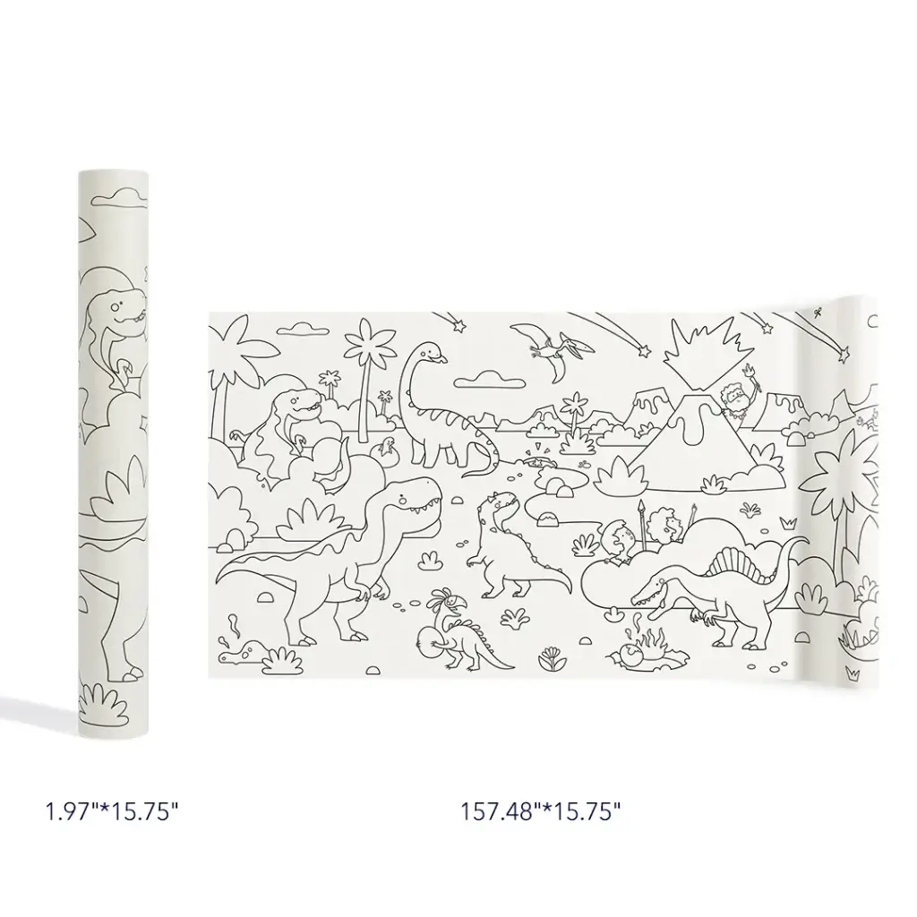 4 metry zróżnicowanej krainy dinozaurów, która tylko czeka na ubarwienie dowolnymi kolorami. Dzięki sporej powierzchni dziecko może stworzyć wyjątkowo różnorodny krajobraz, przelewając na papier całą swoją kreatywność. Kraina na pewno nie będzie jednolita! Wspólnie stwórzcie miejsce, które zachwyca niezbadaną dotąd roślinnością i ekscytuje swoją dzikością na każdym kroku.