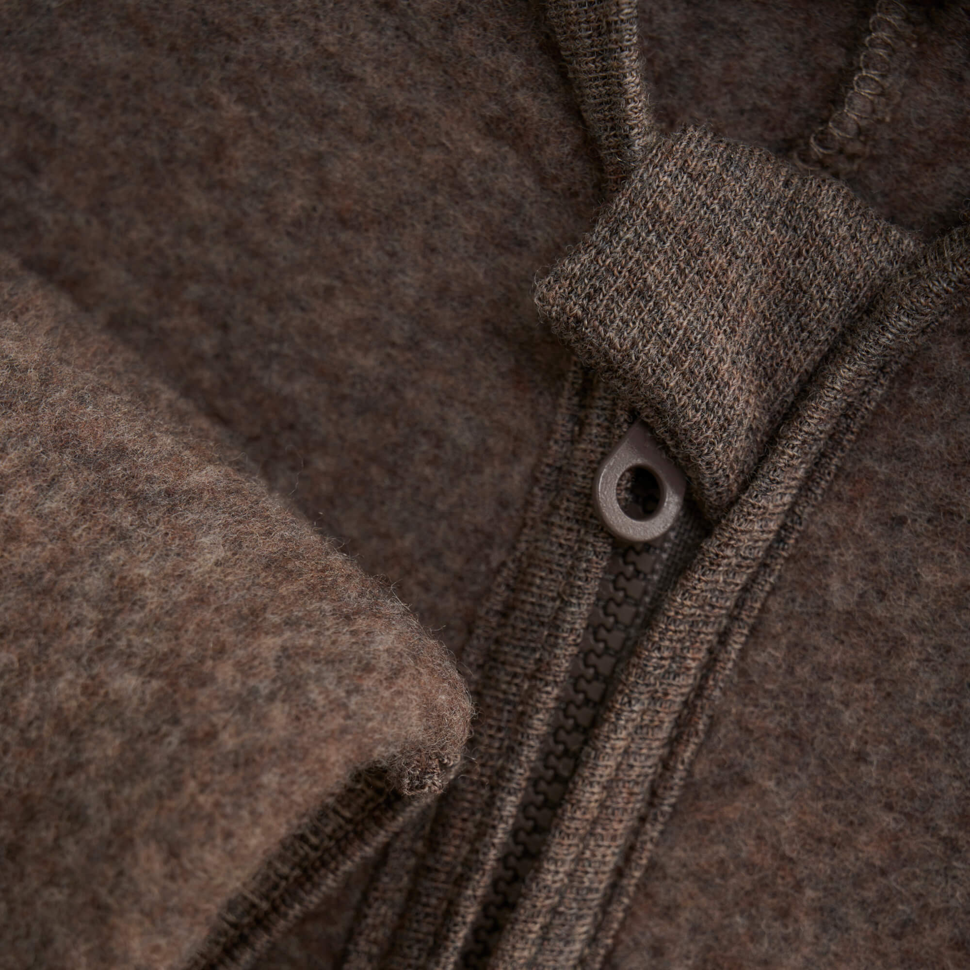 Materiał z wełny merino może z czasem ulegać naturalnemu procesowi mechacenia (kulkowania), co jest typową cechą włókien wełnianych.