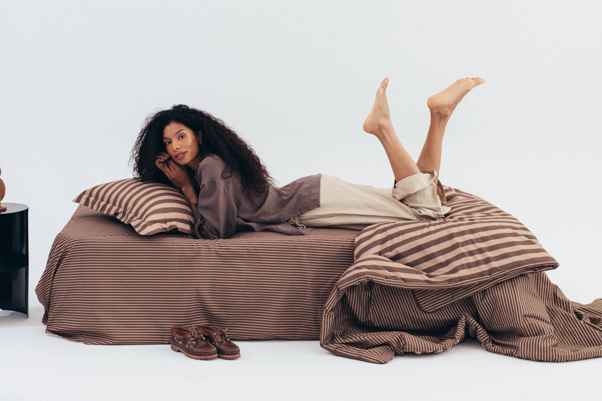 Komplet pościeli bawełnianej HYGGE - STRIPES BROWN