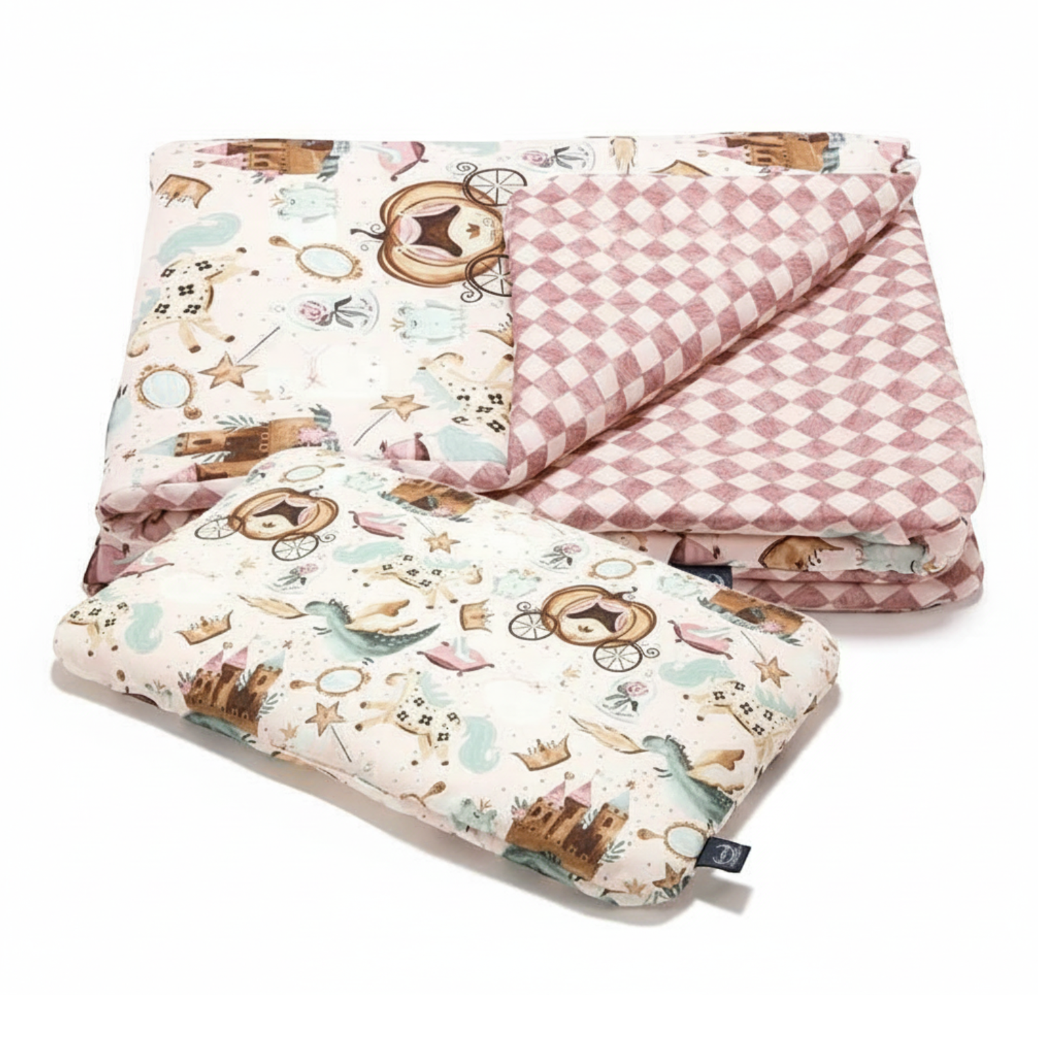 W skład zestawu wchodzi miękka kołderka oraz poduszka z lekkim wypełnieniem z antyalergicznego włókna poliestrowego, które zapewnia właściwą temperaturę, dostęp tlenu i odprowadzanie wilgoci, a w efekcie doskonały komfort snu. Taki kolorowy zestaw pięknie urządzi pokoik każdego dziecka oraz sprawdzi się jako zestaw do przedszkola!
