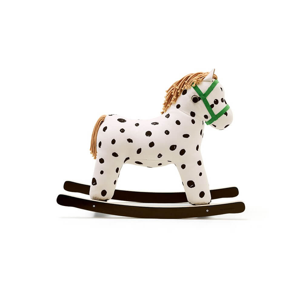 Niektóre konie potrzebują stajni. Inne, tak jak Lilla Gubben, wolą miejsce przy regale z książkami, w kuchni lub właśnie na werandzie. Ten uroczy koń na biegunach jest wzorowany na ukochanym towarzyszu Pippi Długoskarpetki – jest odważny, lojalny i zawsze gotowy do zabawy. Jego czarno-biały, cętkowany wzór został zaczerpnięty prosto z oryginalnych ilustracji książkowych, ożywiając postać z opowieści w codziennej zabawie.