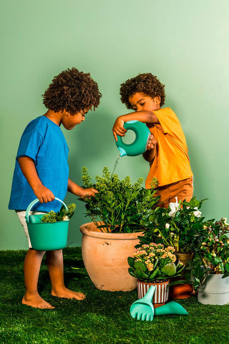 Mała konewka Cana marki Quut przyciąga wzrok niebanalnym designem i oryginalną kolorystyką