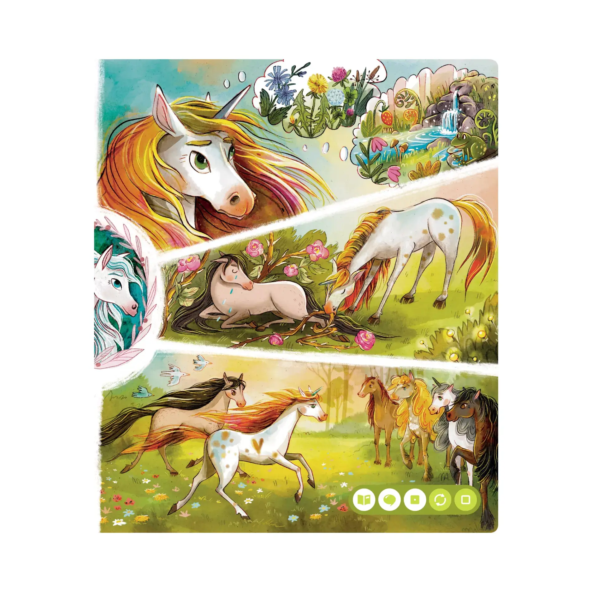 Gdy mistrz Lipa naprawiał karuzelę, nie przypuszczał, że wyrzeźbione przez niego konie i jednorożec ożyją i opowiedzą tyle niezwykłych historii z Hipolonii. W tej pełnej kwitnących łąk i szemrzących strumyków baśniowej krainie mieszkają konie i tęczowe jednorożce. Przeżyj z nimi ciekawe przygody i dowiedz się, jak ważne są przyjaźń i życie w zgodzie, przestrzeganie zasad oraz cierpliwość w dążeniu do celu.