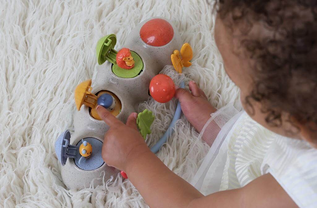 Zabawka przedstawia urocze postaci leśne, które można „wypchnąć” na różne sposoby! Gdy wszystkie postacie są wciśnięte w swoje podstawki, dziecko może zacząć je odkrywać, obserwować, jak postacie wyskakują po naciśnięciu odpowiednich przycisków. Dzięki czterem różnym sposobom wypychania postaci, maluch uczy się o przyczynach i skutkach swoich działań, rozwijając rozumienie, jak działa świat wokół niego. Zabawka jest łatwa w obsłudze i odpowiednia już od 12 m-ca życia, a jej prosta obsługa pozwala na wprowadzenie malucha w fascynujący świat leśnych przyjaciół. Możesz pomóc dziecku, pokazując, jak naciskać odpowiednie przyciski, a także nauczyć je używać odpowiednich słów, takich jak „naciśnij kwiatek” czy „naciśnij pomarańczowy przycisk”.