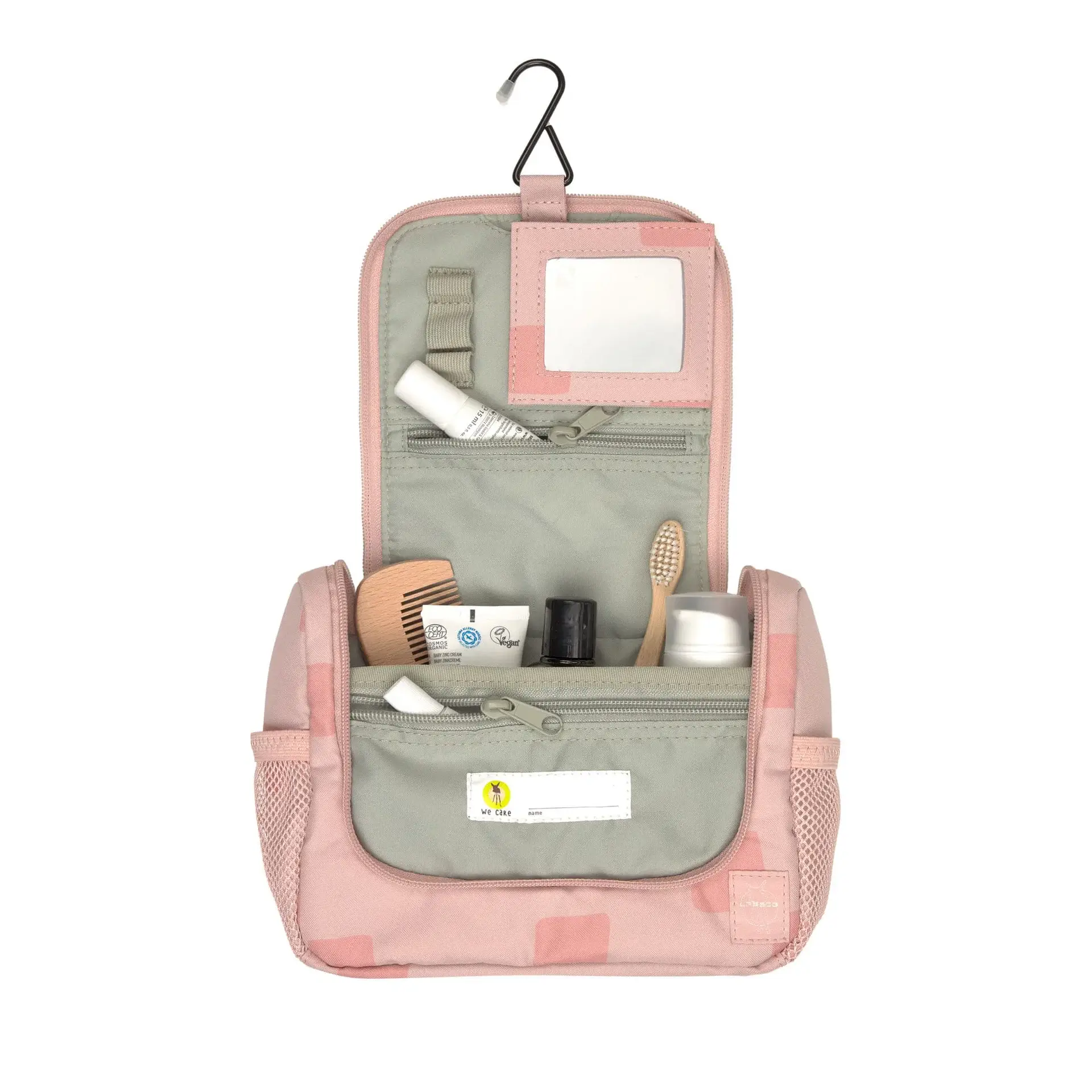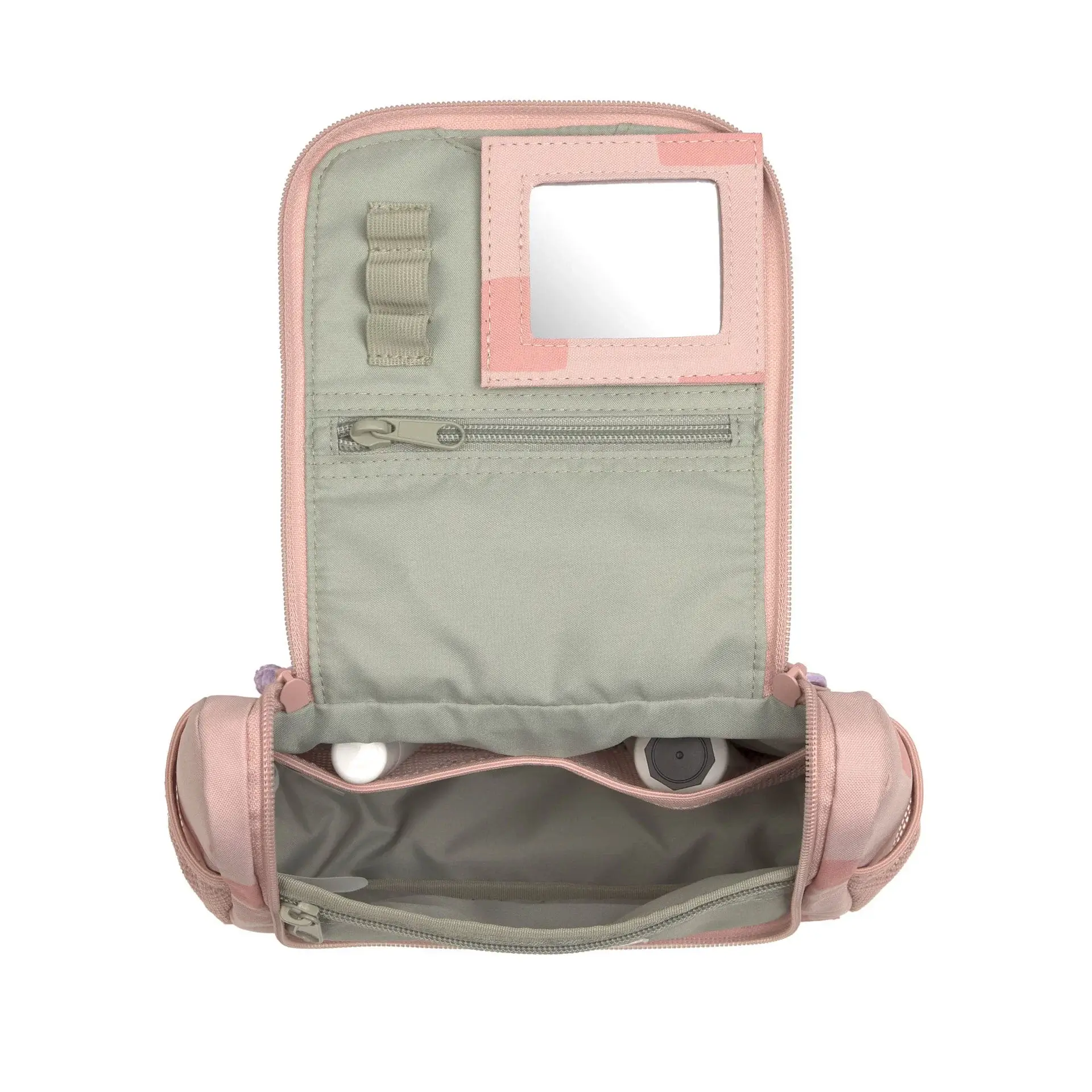 Wodoodporny materiał zewnętrzny, wieszak na haczyk i wyjmowane lusterko to szczególnie praktyczne cechy. Etykieta z imieniem wewnątrz kosmetyczki gwarantuje, że nie dojdzie do pomyłki.