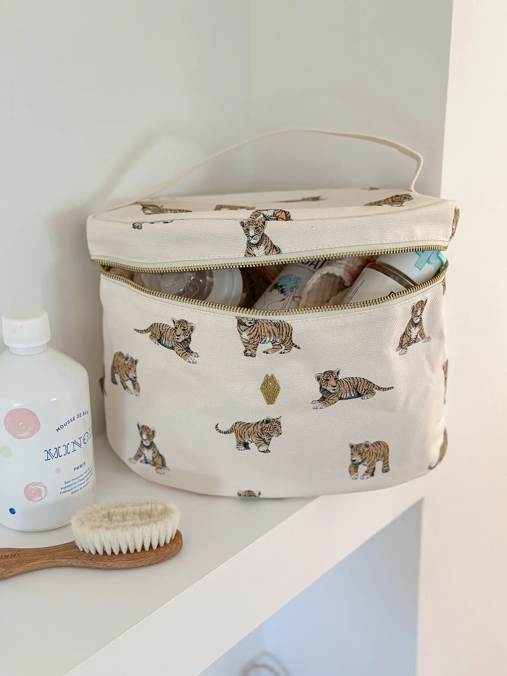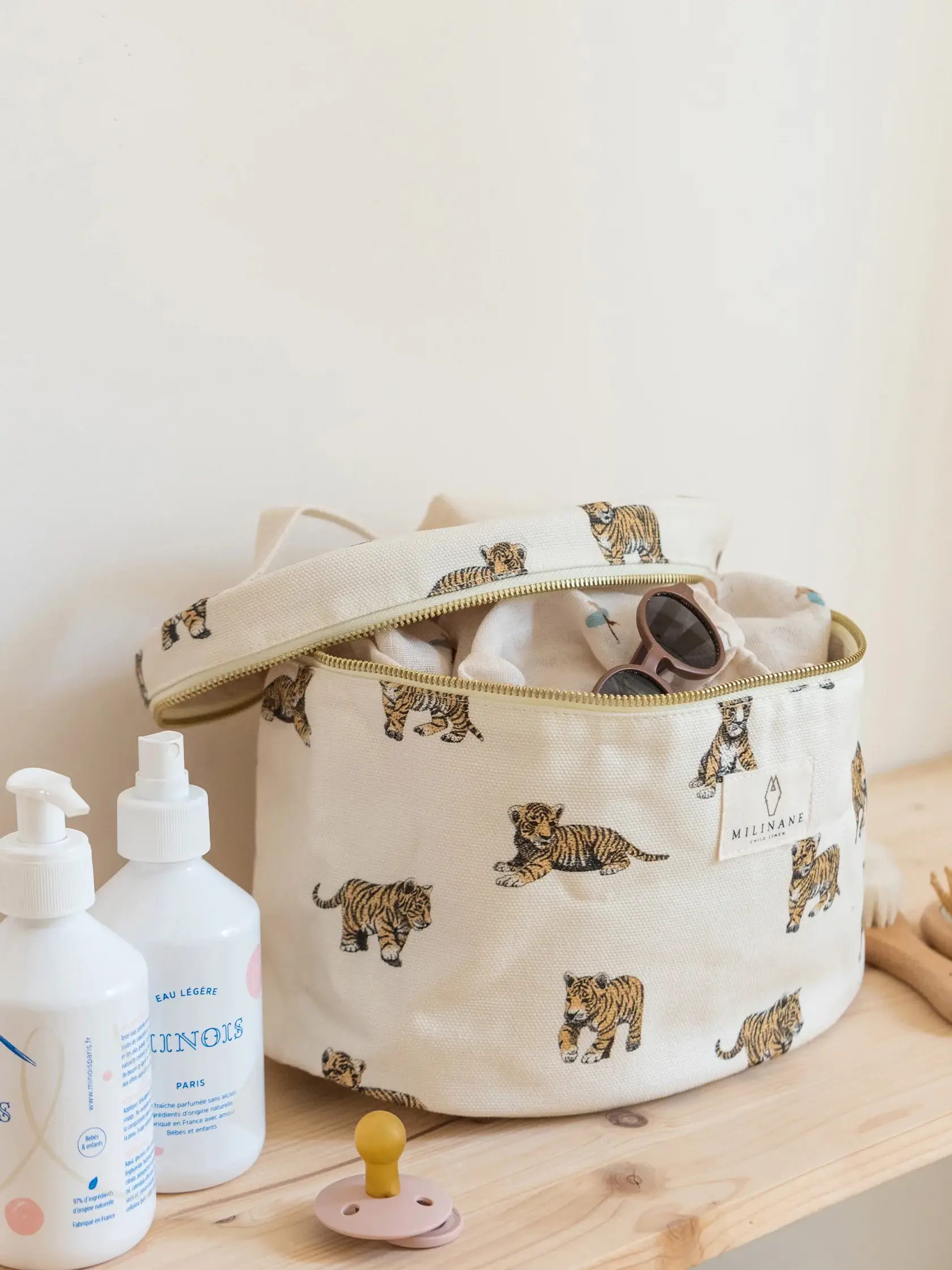 Jako rodzic, organizacja podczas wyjazdów z dzieckiem może być wyzwaniem. Pieluszki, kremy, waciki, szczotka, grzebień… nie możesz zapomnieć o niczym. Aby pomóc Ci utrzymać porządek podczas weekendów i wakacji z maluszkiem, Milinane zaprojektowało dużą kosmetyczkę, która pomieści wszystkie rzeczy Twojego dziecka.