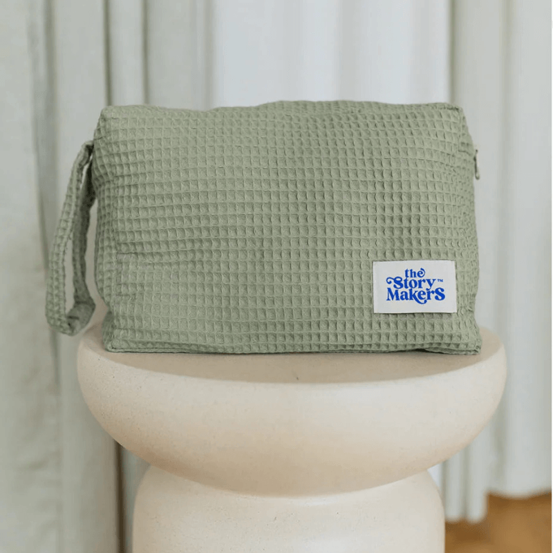W środku kieszonka, na zewnątrz rączka z zatrzaskiem, aby można było ją przywiesić, np. do rączki wózka. Idealna również jako podręczny organizer podczas spacerów czy wyjazdów. Uszyty w Polsce w rodzinnej szwalni.