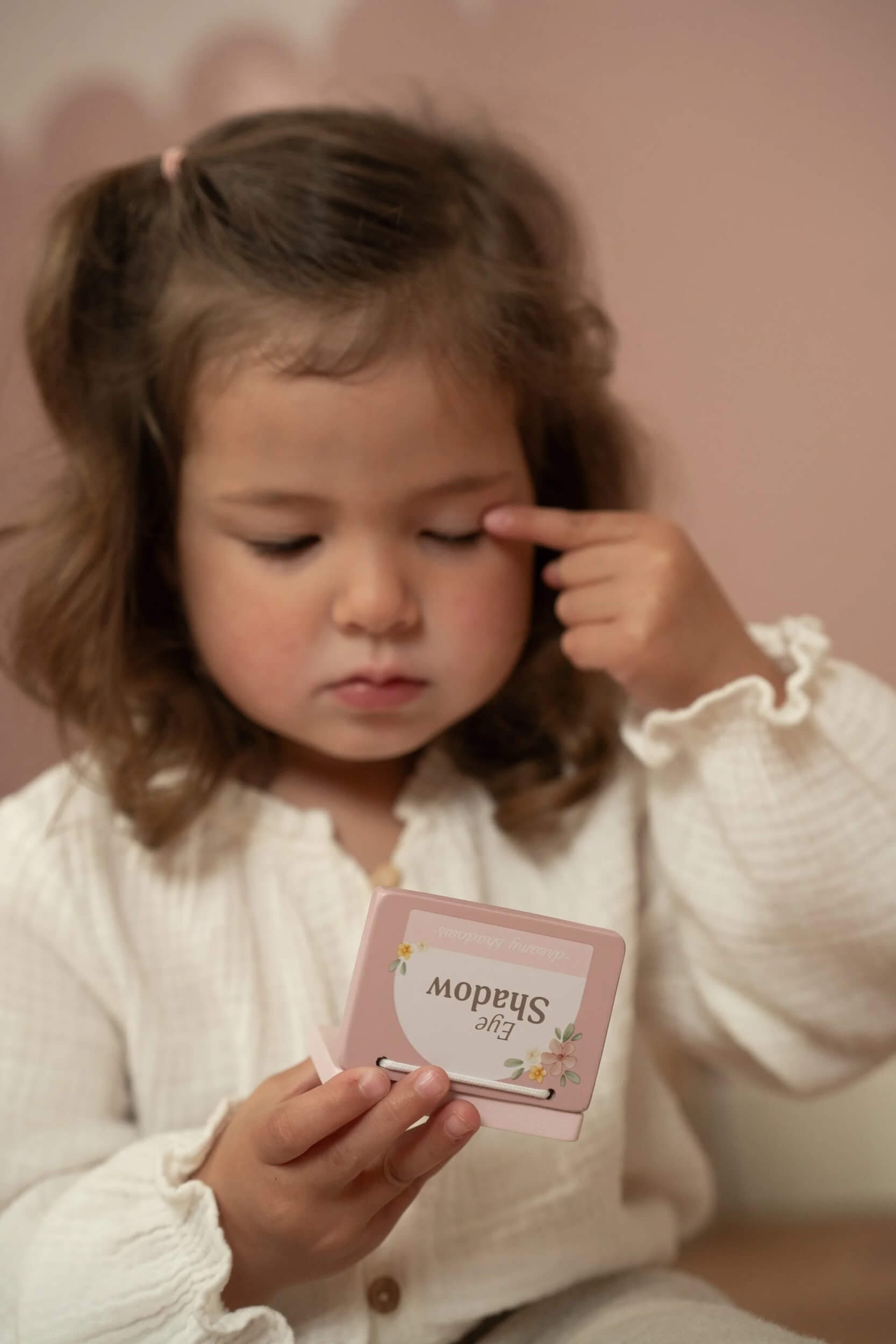 Zainspiruj wyobraźnię do zabawy dzięki tej pięknej kosmetyczce. Torba ma kolorowy kwiatowy wzór i jest wypełniona 10 drewnianymi, kosmetycznymi akcesoriami. Zestaw zawiera lusterko, flakonik perfum, tubkę kremu, pomadkę, lakier do paznokci, puder do twarzy, puszki do pudru, cień do powiek, tusz do rzęs i pilnik do paznokci. Kosmetyczka Little Dutch zapewni doskonałą zabawę prawdziwego makijażu! Pięknie wykonana. Każda mała dziewczynka będzie zachwycona. Doskonały pomysł na prezent.