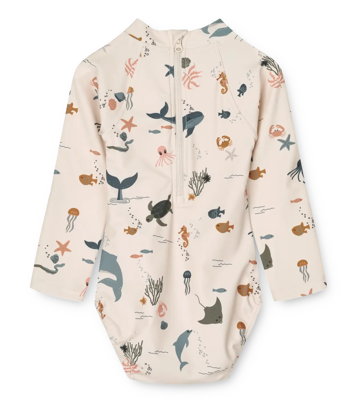 Jednoczęściowy kostium kąpielowy z długim rękawem Maxime sprawdzi się idealnie na plaży czy basenie!
